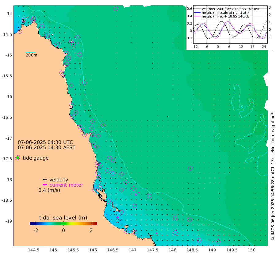 2cm/s 99T +11cm/s rms + 4cm/s -61T. GBRLSL 354m 4cm/s -131T +15cm/s rms + 2cm/s -84T. GBRLSH 32m 12cm/s -115T +15cm/s rms + 5cm/s -155T. GBRPPS 72m 4cm/s -114T +17cm/s rms + 13cm/s 115T. GBRMYR 223m 14cm/s -75T +18cm/s rms + 0cm/s -9T. NRSYON 29m -66cm Osprey Reef - West -79cm Stanley Island -56cm Pipon Islands -71cm Cape Melville -75cm Munro Reef -77cm Leggatt Island -90cm Normanby River -68cm Carter Reef -70cm Lizard Island (QLD) -79cm East Petherbridge Island -72cm North Direction Island -74cm Cape Flattery -72cm Ribbon Reef No.9 -80cm Low Wooded Island -69cm Cape Bedford -47cm Endeavour River North -71cm Cooktown -69cm Cruiser Passage -60cm East Hope Island -70cm Bailay Creek -67cm Low Islets -72cm Port Douglas -72cm Palm Cove -72cm Yorkeys Knob -66cm Michaelmas Cay -48cm Euston Reef -75cm Cairns -63cm Green Island -55cm Fitzroy Island -67cm Sudbury Cay -65cm High Island -56cm Russell Island -72cm Peart Reef -67cm Nathan Reef -75cm Mourilyan Harbour -74cm Cowley Beach -74cm North Barnard Island -76cm Eddy Reef -95cm Beaver Reef -72cm Unnamed Reef No. 1 -59cm Flinders Reef -78cm Clump Point -79cm Dunk Island -73cm Barnett Patches -84cm Goold Island -95cm Cardwell -72cm Britomart Reef -65cm Pith Reef -72cm Dip Reef -87cm Lucinda (Offshore) -77cm John Brewer Reef -87cm Albino Rock -68cm Shrimp Reef -59cm Jaguar Reef -90cm Townsville -85cm Cape Ferguson -90cm Stanley Reef -89cm Wallaby Reef -82cm Kennedy Reef
