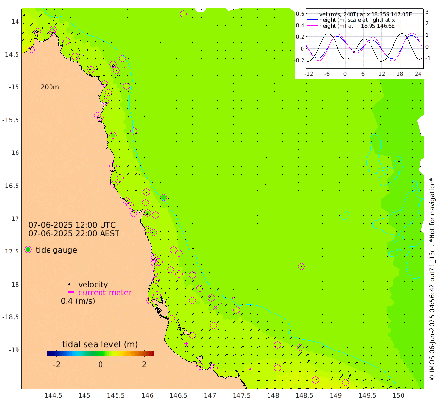 1cm/s -83T +11cm/s rms + 4cm/s -61T. GBRLSL 354m 7cm/s 28T +15cm/s rms + 2cm/s -84T. GBRLSH 32m 11cm/s 53T +15cm/s rms + 5cm/s -155T. GBRPPS 72m 4cm/s 52T +17cm/s rms + 13cm/s 115T. GBRMYR 223m 9cm/s 81T +18cm/s rms + 0cm/s -9T. NRSYON 29m 44cm Osprey Reef - West 48cm Stanley Island 27cm Pipon Islands 41cm Cape Melville 44cm Munro Reef 49cm Leggatt Island 54cm Normanby River 39cm Carter Reef 42cm Lizard Island (QLD) 44cm East Petherbridge Island 41cm North Direction Island 41cm Cape Flattery 44cm Ribbon Reef No.9 45cm Low Wooded Island 40cm Cape Bedford 41cm Endeavour River North 43cm Cooktown 42cm Cruiser Passage 30cm East Hope Island 40cm Bailay Creek 38cm Low Islets 42cm Port Douglas 42cm Palm Cove 45cm Yorkeys Knob 43cm Michaelmas Cay 22cm Euston Reef 43cm Cairns 39cm Green Island 26cm Fitzroy Island 40cm Sudbury Cay 40cm High Island 33cm Russell Island 44cm Peart Reef 41cm Nathan Reef 45cm Mourilyan Harbour 42cm Cowley Beach 50cm North Barnard Island 44cm Eddy Reef 56cm Beaver Reef 45cm Unnamed Reef No. 1 35cm Flinders Reef 46cm Clump Point 50cm Dunk Island 43cm Barnett Patches 51cm Goold Island 57cm Cardwell 40cm Britomart Reef 37cm Pith Reef 46cm Dip Reef 51cm Lucinda (Offshore) 47cm John Brewer Reef 49cm Albino Rock 39cm Shrimp Reef 35cm Jaguar Reef 52cm Townsville 49cm Cape Ferguson 63cm Stanley Reef 63cm Wallaby Reef 55cm Kennedy Reef