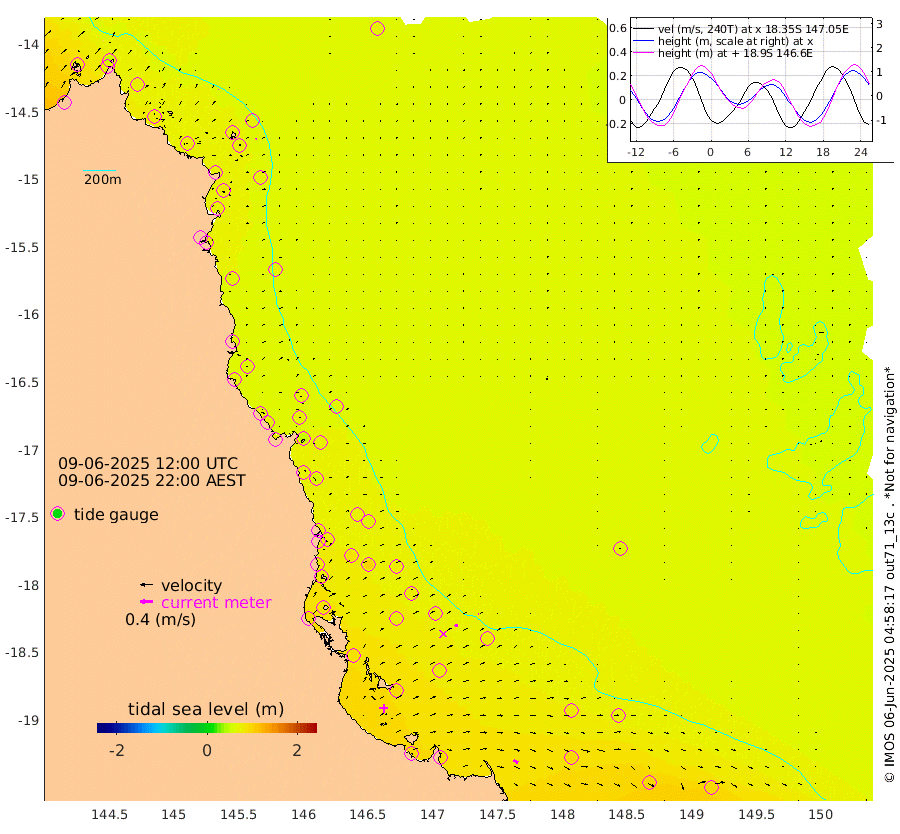 1cm/s -73T +11cm/s rms + 4cm/s -61T. GBRLSL 354m 4cm/s 48T +15cm/s rms + 2cm/s -84T. GBRLSH 32m 10cm/s 72T +15cm/s rms + 5cm/s -155T. GBRPPS 72m 3cm/s 73T +17cm/s rms + 13cm/s 115T. GBRMYR 223m 16cm/s 119T +18cm/s rms + 0cm/s -9T. NRSYON 29m 73cm Osprey Reef - West 79cm Stanley Island 50cm Pipon Islands 70cm Cape Melville 74cm Munro Reef 78cm Leggatt Island 85cm Normanby River 69cm Carter Reef 71cm Lizard Island (QLD) 80cm East Petherbridge Island 75cm North Direction Island 74cm Cape Flattery 73cm Ribbon Reef No.9 80cm Low Wooded Island 73cm Cape Bedford 58cm Endeavour River North 73cm Cooktown 71cm Cruiser Passage 64cm East Hope Island 74cm Bailay Creek 66cm Low Islets 74cm Port Douglas 73cm Palm Cove 71cm Yorkeys Knob 73cm Michaelmas Cay 65cm Euston Reef 76cm Cairns 69cm Green Island 52cm Fitzroy Island 70cm Sudbury Cay 68cm High Island 60cm Russell Island 69cm Peart Reef 65cm Nathan Reef 78cm Mourilyan Harbour 78cm Cowley Beach 75cm North Barnard Island 83cm Eddy Reef 98cm Beaver Reef 77cm Unnamed Reef No. 1 63cm Flinders Reef 81cm Clump Point 81cm Dunk Island 76cm Barnett Patches 86cm Goold Island 96cm Cardwell 73cm Britomart Reef 74cm Pith Reef 76cm Dip Reef 89cm Lucinda (Offshore) 72cm John Brewer Reef 90cm Albino Rock 76cm Shrimp Reef 73cm Jaguar Reef 92cm Townsville 88cm Cape Ferguson 97cm Stanley Reef 97cm Wallaby Reef 95cm Kennedy Reef