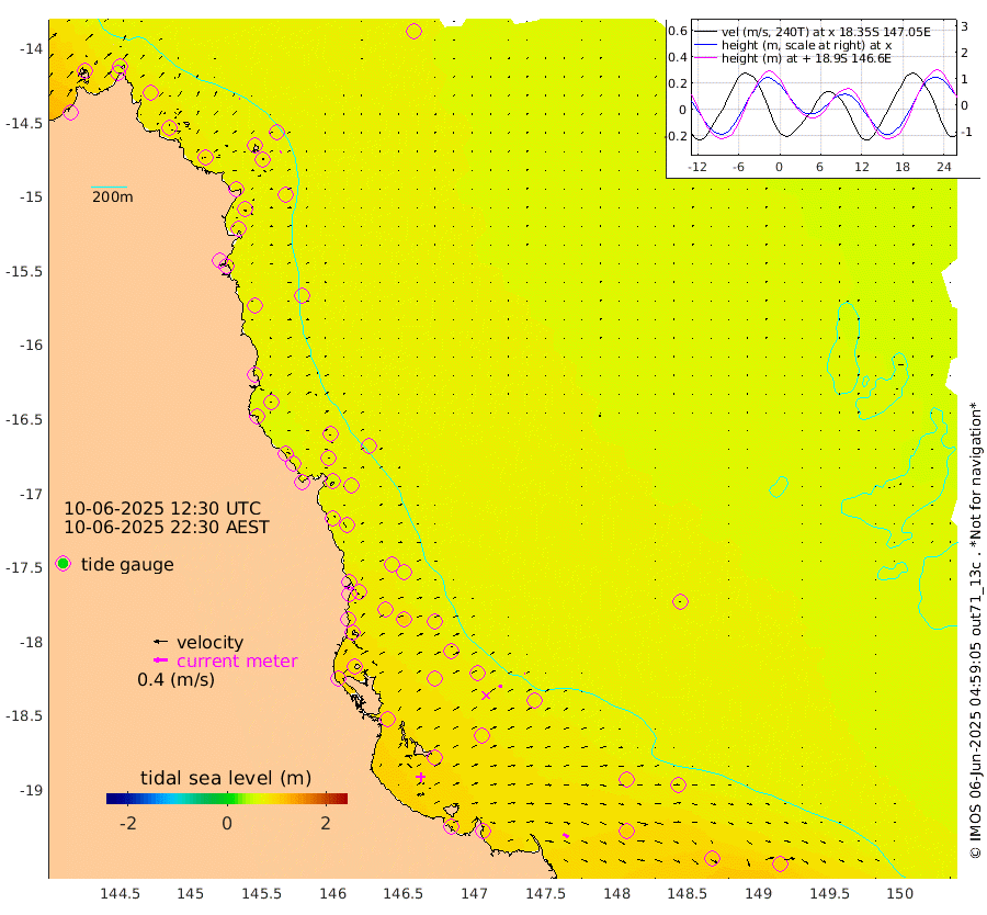 1cm/s -69T +11cm/s rms + 4cm/s -61T. GBRLSL 354m 5cm/s 45T +15cm/s rms + 2cm/s -84T. GBRLSH 32m 10cm/s 72T +15cm/s rms + 5cm/s -155T. GBRPPS 72m 2cm/s 68T +17cm/s rms + 13cm/s 115T. GBRMYR 223m 17cm/s 120T +18cm/s rms + 0cm/s -9T. NRSYON 29m 75cm Osprey Reef - West 83cm Stanley Island 52cm Pipon Islands 75cm Cape Melville 79cm Munro Reef 81cm Leggatt Island 87cm Normanby River 75cm Carter Reef 75cm Lizard Island (QLD) 85cm East Petherbridge Island 79cm North Direction Island 79cm Cape Flattery 77cm Ribbon Reef No.9 84cm Low Wooded Island 77cm Cape Bedford 56cm Endeavour River North 77cm Cooktown 75cm Cruiser Passage 71cm East Hope Island 79cm Bailay Creek 69cm Low Islets 78cm Port Douglas 76cm Palm Cove 72cm Yorkeys Knob 77cm Michaelmas Cay 72cm Euston Reef 80cm Cairns 72cm Green Island 58cm Fitzroy Island 75cm Sudbury Cay 71cm High Island 62cm Russell Island 71cm Peart Reef 66cm Nathan Reef 81cm Mourilyan Harbour 81cm Cowley Beach 80cm North Barnard Island 88cm Eddy Reef 103cm Beaver Reef 80cm Unnamed Reef No. 1 67cm Flinders Reef 84cm Clump Point 84cm Dunk Island 79cm Barnett Patches 89cm Goold Island 100cm Cardwell 76cm Britomart Reef 79cm Pith Reef 79cm Dip Reef 92cm Lucinda (Offshore) 75cm John Brewer Reef 94cm Albino Rock 83cm Shrimp Reef 78cm Jaguar Reef 95cm Townsville 92cm Cape Ferguson 101cm Stanley Reef 103cm Wallaby Reef 99cm Kennedy Reef