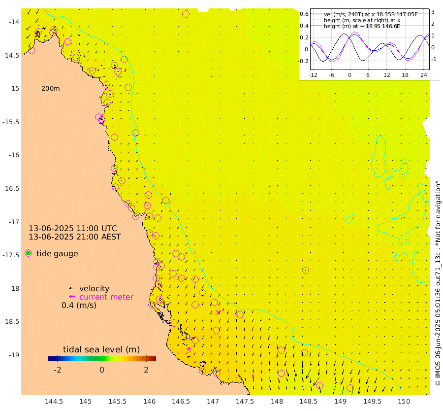 2cm/s -94T +11cm/s rms + 4cm/s -61T. GBRLSL 354m 21cm/s -169T +15cm/s rms + 2cm/s -84T. GBRLSH 32m 14cm/s -156T +15cm/s rms + 5cm/s -155T. GBRPPS 72m 7cm/s -146T +17cm/s rms + 13cm/s 115T. GBRMYR 223m 22cm/s 166T +18cm/s rms + 0cm/s -9T. NRSYON 29m 61cm Osprey Reef - West 66cm Stanley Island 44cm Pipon Islands 60cm Cape Melville 68cm Munro Reef 66cm Leggatt Island 71cm Normanby River 70cm Carter Reef 66cm Lizard Island (QLD) 61cm East Petherbridge Island 59cm North Direction Island 75cm Cape Flattery 69cm Ribbon Reef No.9 70cm Low Wooded Island 57cm Cape Bedford 35cm Endeavour River North 69cm Cooktown 69cm Cruiser Passage 78cm East Hope Island 51cm Bailay Creek 65cm Low Islets 71cm Port Douglas 74cm Palm Cove 71cm Yorkeys Knob 66cm Michaelmas Cay 68cm Euston Reef 73cm Cairns 76cm Green Island 85cm Fitzroy Island 76cm Sudbury Cay 69cm High Island 69cm Russell Island 73cm Peart Reef 70cm Nathan Reef 72cm Mourilyan Harbour 74cm Cowley Beach 66cm North Barnard Island 74cm Eddy Reef 94cm Beaver Reef 74cm Unnamed Reef No. 1 77cm Flinders Reef 77cm Clump Point 79cm Dunk Island 71cm Barnett Patches 81cm Goold Island 80cm Cardwell 81cm Britomart Reef 73cm Pith Reef 78cm Dip Reef 82cm Lucinda (Offshore) 78cm John Brewer Reef 87cm Albino Rock 77cm Shrimp Reef 75cm Jaguar Reef 87cm Townsville 84cm Cape Ferguson 61cm Stanley Reef 59cm Wallaby Reef 62cm Kennedy Reef