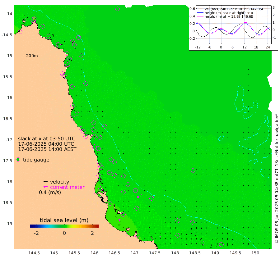 2cm/s 101T +11cm/s rms + 4cm/s -61T. GBRLSL 354m 1cm/s 14T +15cm/s rms + 2cm/s -84T. GBRLSH 32m 1cm/s 118T +15cm/s rms + 5cm/s -155T. GBRPPS 72m 1cm/s 162T +17cm/s rms + 13cm/s 115T. GBRMYR 223m 10cm/s 147T +18cm/s rms + 0cm/s -9T. NRSYON 29m -6cm Osprey Reef - West -2cm Stanley Island 23cm Pipon Islands 0cm Cape Melville -3cm Munro Reef 0cm Leggatt Island 1cm Normanby River -2cm Carter Reef -3cm Lizard Island (QLD) -7cm East Petherbridge Island -7cm North Direction Island -2cm Cape Flattery -9cm Ribbon Reef No.9 -12cm Low Wooded Island -6cm Cape Bedford -8cm Endeavour River North -2cm Cooktown -10cm Cruiser Passage -1cm East Hope Island -5cm Bailay Creek -3cm Low Islets 0cm Port Douglas -1cm Palm Cove -4cm Yorkeys Knob -1cm Michaelmas Cay -1cm Euston Reef 1cm Cairns -4cm Green Island 8cm Fitzroy Island -1cm Sudbury Cay 3cm High Island -3cm Russell Island -5cm Peart Reef -3cm Nathan Reef 1cm Mourilyan Harbour 1cm Cowley Beach 9cm North Barnard Island 0cm Eddy Reef 0cm Beaver Reef -3cm Unnamed Reef No. 1 -8cm Flinders Reef 3cm Clump Point 5cm Dunk Island -7cm Barnett Patches 4cm Goold Island 10cm Cardwell 3cm Britomart Reef -1cm Pith Reef -10cm Dip Reef 7cm Lucinda (Offshore) 4cm John Brewer Reef 4cm Albino Rock 1cm Shrimp Reef 4cm Jaguar Reef 10cm Townsville 8cm Cape Ferguson 1cm Stanley Reef 2cm Wallaby Reef 11cm Kennedy Reef