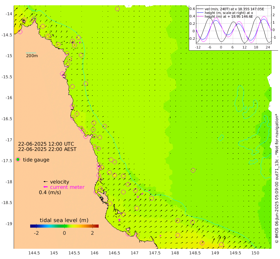 1cm/s -68T +11cm/s rms + 4cm/s -61T. GBRLSL 354m 17cm/s 25T +15cm/s rms + 2cm/s -84T. GBRLSH 32m 19cm/s 51T +15cm/s rms + 5cm/s -155T. GBRPPS 72m 8cm/s 46T +17cm/s rms + 13cm/s 115T. GBRMYR 223m 14cm/s 70T +18cm/s rms + 0cm/s -9T. NRSYON 29m 46cm Osprey Reef - West 65cm Stanley Island 30cm Pipon Islands 57cm Cape Melville 61cm Munro Reef 61cm Leggatt Island 65cm Normanby River 61cm Carter Reef 54cm Lizard Island (QLD) 62cm East Petherbridge Island 56cm North Direction Island 59cm Cape Flattery 52cm Ribbon Reef No.9 51cm Low Wooded Island 55cm Cape Bedford 31cm Endeavour River North 54cm Cooktown 47cm Cruiser Passage 50cm East Hope Island 56cm Bailay Creek 49cm Low Islets 52cm Port Douglas 48cm Palm Cove 46cm Yorkeys Knob 56cm Michaelmas Cay 42cm Euston Reef 54cm Cairns 45cm Green Island 42cm Fitzroy Island 51cm Sudbury Cay 45cm High Island 39cm Russell Island 49cm Peart Reef 44cm Nathan Reef 56cm Mourilyan Harbour 53cm Cowley Beach 67cm North Barnard Island 55cm Eddy Reef 71cm Beaver Reef 50cm Unnamed Reef No. 1 42cm Flinders Reef 56cm Clump Point 59cm Dunk Island 51cm Barnett Patches 59cm Goold Island 74cm Cardwell 46cm Britomart Reef 49cm Pith Reef 48cm Dip Reef 63cm Lucinda (Offshore) 64cm John Brewer Reef 59cm Albino Rock 58cm Shrimp Reef 46cm Jaguar Reef 63cm Townsville 60cm Cape Ferguson 78cm Stanley Reef 84cm Wallaby Reef 67cm Kennedy Reef