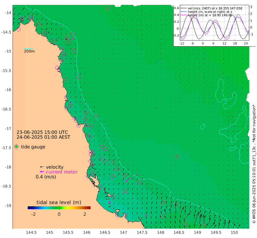 2cm/s -60T +11cm/s rms + 4cm/s -61T. GBRLSL 354m 22cm/s 13T +15cm/s rms + 2cm/s -84T. GBRLSH 32m 15cm/s 29T +15cm/s rms + 5cm/s -155T. GBRPPS 72m 9cm/s 29T +17cm/s rms + 13cm/s 115T. GBRMYR 223m 24cm/s -11T +18cm/s rms + 0cm/s -9T. NRSYON 29m -25cm Osprey Reef - West -27cm Stanley Island -47cm Pipon Islands -20cm Cape Melville -24cm Munro Reef -27cm Leggatt Island -41cm Normanby River -18cm Carter Reef -25cm Lizard Island (QLD) -22cm East Petherbridge Island -21cm North Direction Island -26cm Cape Flattery -24cm Ribbon Reef No.9 -24cm Low Wooded Island -19cm Cape Bedford -18cm Endeavour River North -28cm Cooktown -25cm Cruiser Passage -27cm East Hope Island -19cm Bailay Creek -27cm Low Islets -33cm Port Douglas -36cm Palm Cove -36cm Yorkeys Knob -22cm Michaelmas Cay -25cm Euston Reef -34cm Cairns -34cm Green Island -37cm Fitzroy Island -31cm Sudbury Cay -32cm High Island -33cm Russell Island -35cm Peart Reef -35cm Nathan Reef -32cm Mourilyan Harbour -38cm Cowley Beach -26cm North Barnard Island -31cm Eddy Reef -43cm Beaver Reef -34cm Unnamed Reef No. 1 -26cm Flinders Reef -39cm Clump Point -40cm Dunk Island -32cm Barnett Patches -44cm Goold Island -42cm Cardwell -45cm Britomart Reef -29cm Pith Reef -28cm Dip Reef -45cm Lucinda (Offshore) -32cm John Brewer Reef -50cm Albino Rock -27cm Shrimp Reef -33cm Jaguar Reef -52cm Townsville -48cm Cape Ferguson -21cm Stanley Reef -13cm Wallaby Reef -26cm Kennedy Reef