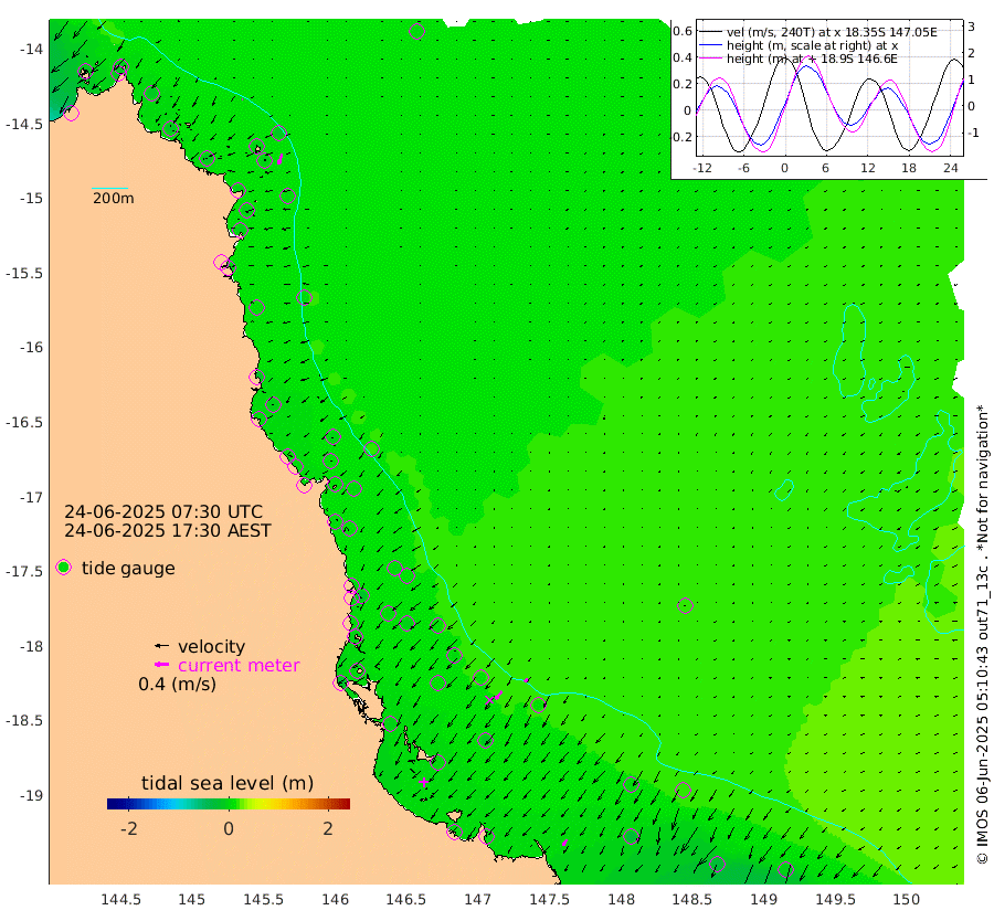 1cm/s 119T +11cm/s rms + 4cm/s -61T. GBRLSL 354m 30cm/s -161T +15cm/s rms + 2cm/s -84T. GBRLSH 32m 28cm/s -137T +15cm/s rms + 5cm/s -155T. GBRPPS 72m 12cm/s -138T +17cm/s rms + 13cm/s 115T. GBRMYR 223m 19cm/s -144T +18cm/s rms + 0cm/s -9T. NRSYON 29m 6cm Osprey Reef - West -15cm Stanley Island -10cm Pipon Islands -13cm Cape Melville -13cm Munro Reef -12cm Leggatt Island -18cm Normanby River -9cm Carter Reef -2cm Lizard Island (QLD) -12cm East Petherbridge Island -6cm North Direction Island -5cm Cape Flattery 2cm Ribbon Reef No.9 -3cm Low Wooded Island -5cm Cape Bedford 5cm Endeavour River North -1cm Cooktown 6cm Cruiser Passage 8cm East Hope Island -17cm Bailay Creek -1cm Low Islets 2cm Port Douglas 8cm Palm Cove 7cm Yorkeys Knob -3cm Michaelmas Cay 17cm Euston Reef 0cm Cairns 14cm Green Island 8cm Fitzroy Island 5cm Sudbury Cay 6cm High Island 15cm Russell Island 6cm Peart Reef 8cm Nathan Reef 0cm Mourilyan Harbour 4cm Cowley Beach -22cm North Barnard Island 1cm Eddy Reef -2cm Beaver Reef 9cm Unnamed Reef No. 1 19cm Flinders Reef 2cm Clump Point -1cm Dunk Island 5cm Barnett Patches 3cm Goold Island -18cm Cardwell 14cm Britomart Reef 8cm Pith Reef 13cm Dip Reef -3cm Lucinda (Offshore) -9cm John Brewer Reef 4cm Albino Rock 3cm Shrimp Reef 16cm Jaguar Reef 0cm Townsville 4cm Cape Ferguson -23cm Stanley Reef -29cm Wallaby Reef -7cm Kennedy Reef