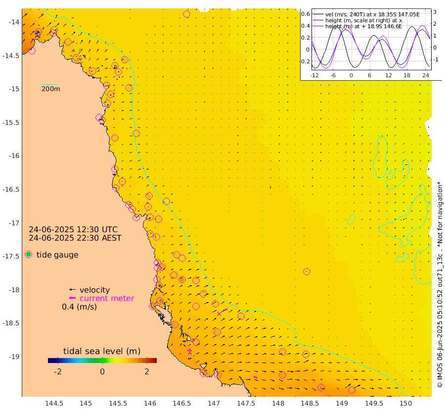 2cm/s -72T +11cm/s rms + 4cm/s -61T. GBRLSL 354m 8cm/s 47T +15cm/s rms + 2cm/s -84T. GBRLSH 32m 16cm/s 69T +15cm/s rms + 5cm/s -155T. GBRPPS 72m 5cm/s 64T +17cm/s rms + 13cm/s 115T. GBRMYR 223m 23cm/s 115T +18cm/s rms + 0cm/s -9T. NRSYON 29m 97cm Osprey Reef - West 120cm Stanley Island 84cm Pipon Islands 109cm Cape Melville 117cm Munro Reef 119cm Leggatt Island 129cm Normanby River 114cm Carter Reef 109cm Lizard Island (QLD) 112cm East Petherbridge Island 105cm North Direction Island 113cm Cape Flattery 106cm Ribbon Reef No.9 109cm Low Wooded Island 99cm Cape Bedford 68cm Endeavour River North 109cm Cooktown 101cm Cruiser Passage 106cm East Hope Island 104cm Bailay Creek 103cm Low Islets 111cm Port Douglas 109cm Palm Cove 109cm Yorkeys Knob 108cm Michaelmas Cay 84cm Euston Reef 114cm Cairns 102cm Green Island 104cm Fitzroy Island 108cm Sudbury Cay 106cm High Island 91cm Russell Island 109cm Peart Reef 104cm Nathan Reef 115cm Mourilyan Harbour 112cm Cowley Beach 129cm North Barnard Island 113cm Eddy Reef 149cm Beaver Reef 110cm Unnamed Reef No. 1 94cm Flinders Reef 119cm Clump Point 125cm Dunk Island 111cm Barnett Patches 128cm Goold Island 144cm Cardwell 112cm Britomart Reef 106cm Pith Reef 107cm Dip Reef 132cm Lucinda (Offshore) 127cm John Brewer Reef 127cm Albino Rock 116cm Shrimp Reef 101cm Jaguar Reef 136cm Townsville 129cm Cape Ferguson 138cm Stanley Reef 139cm Wallaby Reef 124cm Kennedy Reef