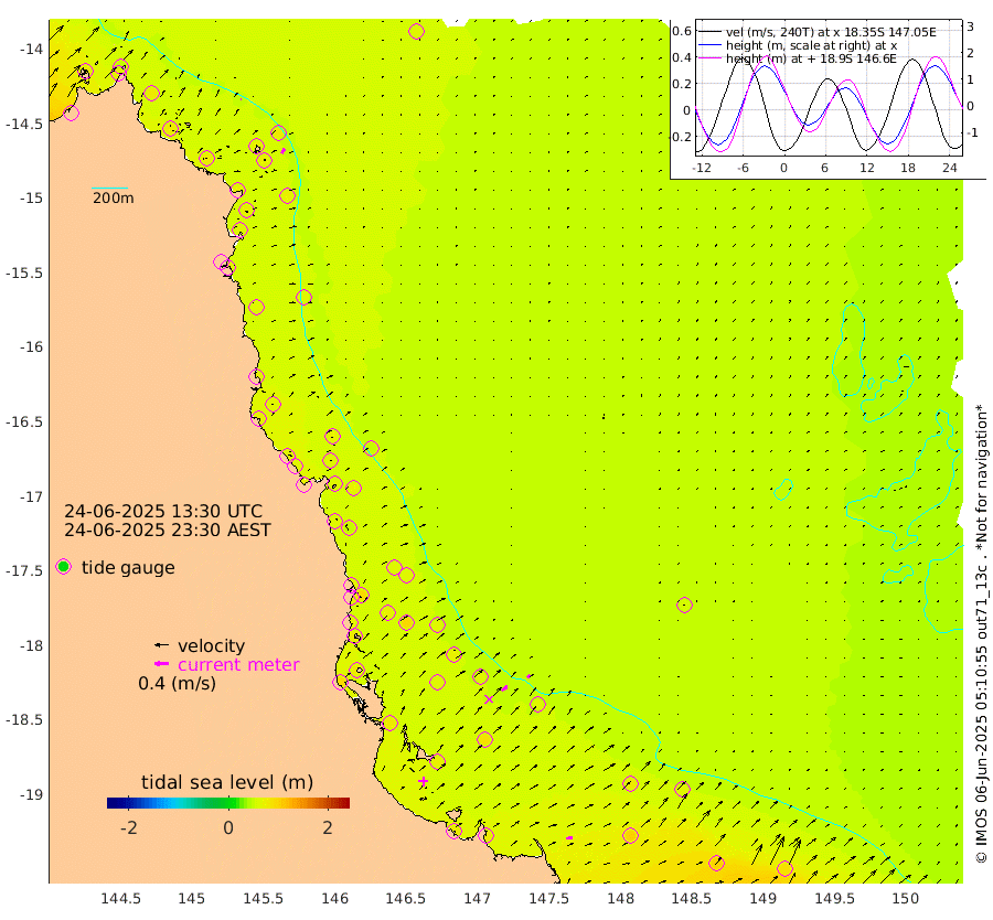 2cm/s -66T +11cm/s rms + 4cm/s -61T. GBRLSL 354m 16cm/s 27T +15cm/s rms + 2cm/s -84T. GBRLSH 32m 20cm/s 53T +15cm/s rms + 5cm/s -155T. GBRPPS 72m 9cm/s 46T +17cm/s rms + 13cm/s 115T. GBRMYR 223m 16cm/s 80T +18cm/s rms + 0cm/s -9T. NRSYON 29m 62cm Osprey Reef - West 81cm Stanley Island 47cm Pipon Islands 75cm Cape Melville 80cm Munro Reef 79cm Leggatt Island 83cm Normanby River 79cm Carter Reef 72cm Lizard Island (QLD) 75cm East Petherbridge Island 70cm North Direction Island 74cm Cape Flattery 68cm Ribbon Reef No.9 70cm Low Wooded Island 66cm Cape Bedford 44cm Endeavour River North 70cm Cooktown 64cm Cruiser Passage 67cm East Hope Island 72cm Bailay Creek 66cm Low Islets 69cm Port Douglas 65cm Palm Cove 67cm Yorkeys Knob 72cm Michaelmas Cay 49cm Euston Reef 71cm Cairns 61cm Green Island 63cm Fitzroy Island 68cm Sudbury Cay 66cm High Island 52cm Russell Island 67cm Peart Reef 63cm Nathan Reef 73cm Mourilyan Harbour 68cm Cowley Beach 91cm North Barnard Island 71cm Eddy Reef 95cm Beaver Reef 67cm Unnamed Reef No. 1 56cm Flinders Reef 73cm Clump Point 78cm Dunk Island 69cm Barnett Patches 78cm Goold Island 94cm Cardwell 64cm Britomart Reef 67cm Pith Reef 66cm Dip Reef 81cm Lucinda (Offshore) 84cm John Brewer Reef 74cm Albino Rock 75cm Shrimp Reef 61cm Jaguar Reef 81cm Townsville 77cm Cape Ferguson 99cm Stanley Reef 103cm Wallaby Reef 83cm Kennedy Reef