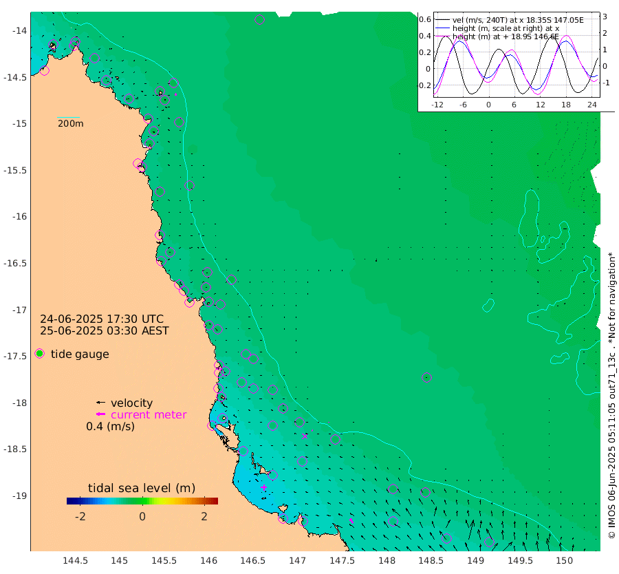0cm/s -19T +11cm/s rms + 4cm/s -61T. GBRLSL 354m 11cm/s 6T +15cm/s rms + 2cm/s -84T. GBRLSH 32m 5cm/s -49T +15cm/s rms + 5cm/s -155T. GBRPPS 72m 3cm/s -2T +17cm/s rms + 13cm/s 115T. GBRMYR 223m 25cm/s -36T +18cm/s rms + 0cm/s -9T. NRSYON 29m -45cm Osprey Reef - West -58cm Stanley Island -65cm Pipon Islands -47cm Cape Melville -51cm Munro Reef -57cm Leggatt Island -77cm Normanby River -43cm Carter Reef -48cm Lizard Island (QLD) -49cm East Petherbridge Island -44cm North Direction Island -51cm Cape Flattery -44cm Ribbon Reef No.9 -41cm Low Wooded Island -41cm Cape Bedford -37cm Endeavour River North -50cm Cooktown -42cm Cruiser Passage -43cm East Hope Island -44cm Bailay Creek -46cm Low Islets -54cm Port Douglas -53cm Palm Cove -55cm Yorkeys Knob -49cm Michaelmas Cay -37cm Euston Reef -56cm Cairns -50cm Green Island -54cm Fitzroy Island -53cm Sudbury Cay -51cm High Island -46cm Russell Island -55cm Peart Reef -51cm Nathan Reef -56cm Mourilyan Harbour -60cm Cowley Beach -66cm North Barnard Island -54cm Eddy Reef -74cm Beaver Reef -54cm Unnamed Reef No. 1 -39cm Flinders Reef -63cm Clump Point -67cm Dunk Island -53cm Barnett Patches -69cm Goold Island -80cm Cardwell -59cm Britomart Reef -50cm Pith Reef -47cm Dip Reef -74cm Lucinda (Offshore) -61cm John Brewer Reef -75cm Albino Rock -51cm Shrimp Reef -52cm Jaguar Reef -81cm Townsville -74cm Cape Ferguson -64cm Stanley Reef -61cm Wallaby Reef -61cm Kennedy Reef