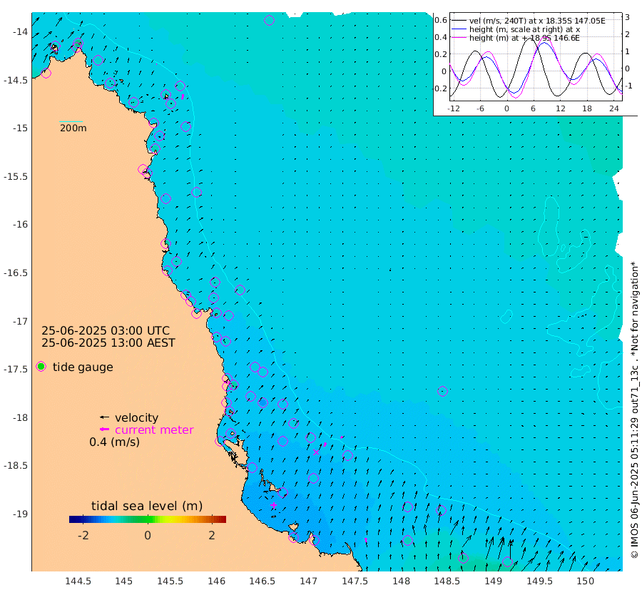 1cm/s 80T +11cm/s rms + 4cm/s -61T. GBRLSL 354m 22cm/s 10T +15cm/s rms + 2cm/s -84T. GBRLSH 32m 18cm/s 21T +15cm/s rms + 5cm/s -155T. GBRPPS 72m 9cm/s 32T +17cm/s rms + 13cm/s 115T. GBRMYR 223m 19cm/s -7T +18cm/s rms + 0cm/s -9T. NRSYON 29m -93cm Osprey Reef - West -91cm Stanley Island -60cm Pipon Islands -85cm Cape Melville -94cm Munro Reef -93cm Leggatt Island -91cm Normanby River -95cm Carter Reef -95cm Lizard Island (QLD) -94cm East Petherbridge Island -92cm North Direction Island -99cm Cape Flattery -100cm Ribbon Reef No.9 -113cm Low Wooded Island -89cm Cape Bedford -54cm Endeavour River North -98cm Cooktown -102cm Cruiser Passage -106cm East Hope Island -82cm Bailay Creek -94cm Low Islets -101cm Port Douglas -108cm Palm Cove -104cm Yorkeys Knob -90cm Michaelmas Cay -95cm Euston Reef -103cm Cairns -105cm Green Island -97cm Fitzroy Island -100cm Sudbury Cay -100cm High Island -96cm Russell Island -103cm Peart Reef -101cm Nathan Reef -102cm Mourilyan Harbour -102cm Cowley Beach -77cm North Barnard Island -106cm Eddy Reef -130cm Beaver Reef -106cm Unnamed Reef No. 1 -103cm Flinders Reef -106cm Clump Point -105cm Dunk Island -102cm Barnett Patches -113cm Goold Island -105cm Cardwell -116cm Britomart Reef -100cm Pith Reef -111cm Dip Reef -110cm Lucinda (Offshore) -98cm John Brewer Reef -116cm Albino Rock -102cm Shrimp Reef -99cm Jaguar Reef -116cm Townsville -113cm Cape Ferguson -90cm Stanley Reef -78cm Wallaby Reef -93cm Kennedy Reef