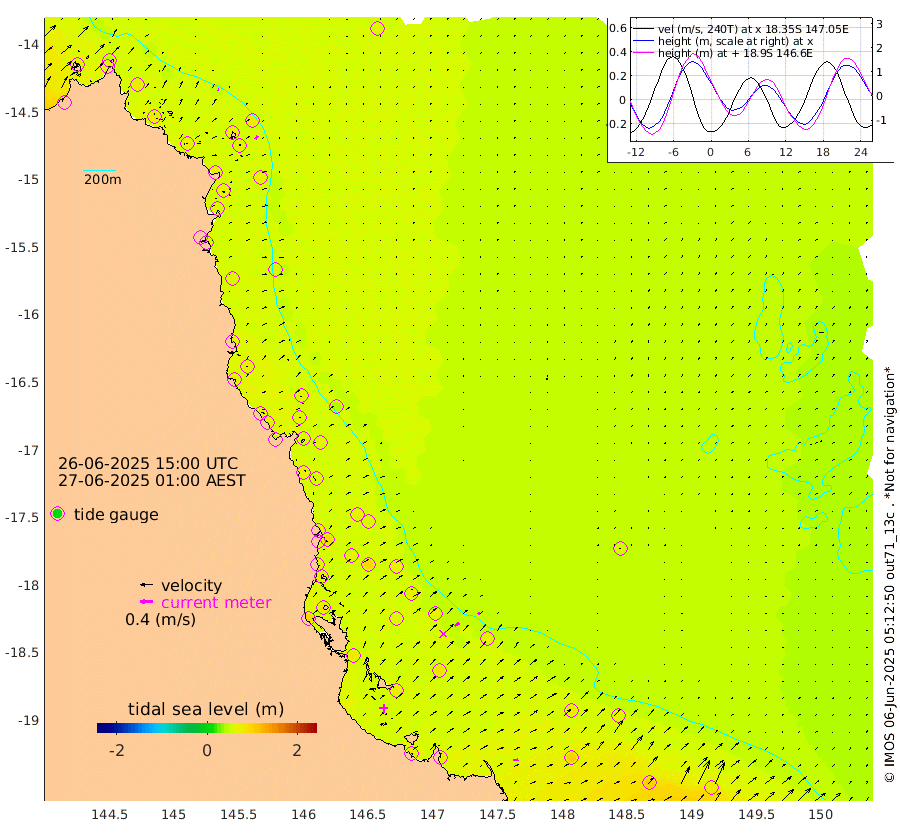 3cm/s -63T +11cm/s rms + 4cm/s -61T. GBRLSL 354m 12cm/s 30T +15cm/s rms + 2cm/s -84T. GBRLSH 32m 17cm/s 54T +15cm/s rms + 5cm/s -155T. GBRPPS 72m 8cm/s 46T +17cm/s rms + 13cm/s 115T. GBRMYR 223m 15cm/s 84T +18cm/s rms + 0cm/s -9T. NRSYON 29m 63cm Osprey Reef - West 79cm Stanley Island 51cm Pipon Islands 74cm Cape Melville 79cm Munro Reef 79cm Leggatt Island 82cm Normanby River 78cm Carter Reef 74cm Lizard Island (QLD) 73cm East Petherbridge Island 69cm North Direction Island 71cm Cape Flattery 69cm Ribbon Reef No.9 74cm Low Wooded Island 64cm Cape Bedford 48cm Endeavour River North 71cm Cooktown 66cm Cruiser Passage 67cm East Hope Island 75cm Bailay Creek 68cm Low Islets 70cm Port Douglas 68cm Palm Cove 71cm Yorkeys Knob 71cm Michaelmas Cay 43cm Euston Reef 72cm Cairns 62cm Green Island 64cm Fitzroy Island 67cm Sudbury Cay 70cm High Island 53cm Russell Island 69cm Peart Reef 67cm Nathan Reef 73cm Mourilyan Harbour 68cm Cowley Beach 92cm North Barnard Island 70cm Eddy Reef 97cm Beaver Reef 68cm Unnamed Reef No. 1 56cm Flinders Reef 73cm Clump Point 79cm Dunk Island 73cm Barnett Patches 79cm Goold Island 91cm Cardwell 67cm Britomart Reef 68cm Pith Reef 68cm Dip Reef 80cm Lucinda (Offshore) 84cm John Brewer Reef 72cm Albino Rock 76cm Shrimp Reef 60cm Jaguar Reef 81cm Townsville 77cm Cape Ferguson 99cm Stanley Reef 101cm Wallaby Reef 81cm Kennedy Reef