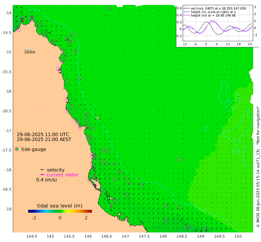 2cm/s -94T +11cm/s rms + 4cm/s -61T. GBRLSL 354m 13cm/s -159T +15cm/s rms + 2cm/s -84T. GBRLSH 32m 14cm/s -137T +15cm/s rms + 5cm/s -155T. GBRPPS 72m 6cm/s -135T +17cm/s rms + 13cm/s 115T. GBRMYR 223m 10cm/s -147T +18cm/s rms + 0cm/s -9T. NRSYON 29m 6cm Osprey Reef - West -1cm Stanley Island -21cm Pipon Islands -2cm Cape Melville -4cm Munro Reef -4cm Leggatt Island -5cm Normanby River 1cm Carter Reef 1cm Lizard Island (QLD) 4cm East Petherbridge Island 4cm North Direction Island 9cm Cape Flattery 8cm Ribbon Reef No.9 10cm Low Wooded Island 7cm Cape Bedford 4cm Endeavour River North 4cm Cooktown 10cm Cruiser Passage 11cm East Hope Island -4cm Bailay Creek 2cm Low Islets 3cm Port Douglas 5cm Palm Cove 0cm Yorkeys Knob 6cm Michaelmas Cay 25cm Euston Reef 2cm Cairns 12cm Green Island 7cm Fitzroy Island 9cm Sudbury Cay 1cm High Island 14cm Russell Island 4cm Peart Reef 0cm Nathan Reef 2cm Mourilyan Harbour 6cm Cowley Beach -12cm North Barnard Island 9cm Eddy Reef 3cm Beaver Reef 8cm Unnamed Reef No. 1 19cm Flinders Reef 3cm Clump Point 0cm Dunk Island 5cm Barnett Patches 1cm Goold Island -7cm Cardwell 6cm Britomart Reef 11cm Pith Reef 15cm Dip Reef 0cm Lucinda (Offshore) -3cm John Brewer Reef 9cm Albino Rock 8cm Shrimp Reef 13cm Jaguar Reef 1cm Townsville 3cm Cape Ferguson -12cm Stanley Reef -13cm Wallaby Reef -5cm Kennedy Reef