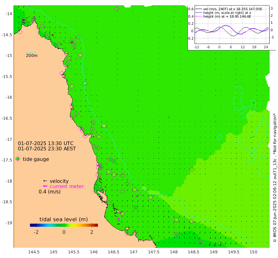 3cm/s -81T +11cm/s rms + 4cm/s -61T. GBRLSL 354m 4cm/s -159T +15cm/s rms + 2cm/s -84T. GBRLSH 32m 8cm/s -144T +15cm/s rms + 5cm/s -155T. GBRPPS 72m 3cm/s -134T +17cm/s rms + 13cm/s 115T. GBRMYR 223m 9cm/s -179T +18cm/s rms + 0cm/s -9T. NRSYON 29m 20cm Osprey Reef - West 14cm Stanley Island -2cm Pipon Islands 18cm Cape Melville 15cm Munro Reef 15cm Leggatt Island 13cm Normanby River 18cm Carter Reef 17cm Lizard Island (QLD) 20cm East Petherbridge Island 18cm North Direction Island 25cm Cape Flattery 23cm Ribbon Reef No.9 28cm Low Wooded Island 19cm Cape Bedford 10cm Endeavour River North 19cm Cooktown 23cm Cruiser Passage 25cm East Hope Island 13cm Bailay Creek 17cm Low Islets 18cm Port Douglas 19cm Palm Cove 14cm Yorkeys Knob 21cm Michaelmas Cay 32cm Euston Reef 19cm Cairns 21cm Green Island 25cm Fitzroy Island 23cm Sudbury Cay 17cm High Island 20cm Russell Island 15cm Peart Reef 13cm Nathan Reef 19cm Mourilyan Harbour 19cm Cowley Beach 11cm North Barnard Island 28cm Eddy Reef 23cm Beaver Reef 21cm Unnamed Reef No. 1 29cm Flinders Reef 19cm Clump Point 15cm Dunk Island 18cm Barnett Patches 17cm Goold Island 16cm Cardwell 18cm Britomart Reef 27cm Pith Reef 29cm Dip Reef 18cm Lucinda (Offshore) 14cm John Brewer Reef 23cm Albino Rock 25cm Shrimp Reef 24cm Jaguar Reef 18cm Townsville 18cm Cape Ferguson 10cm Stanley Reef 12cm Wallaby Reef 18cm Kennedy Reef