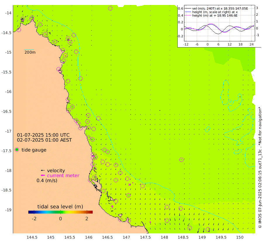 3cm/s -76T +11cm/s rms + 4cm/s -61T. GBRLSL 354m 4cm/s -161T +15cm/s rms + 2cm/s -84T. GBRLSH 32m 7cm/s -160T +15cm/s rms + 5cm/s -155T. GBRPPS 72m 3cm/s -146T +17cm/s rms + 13cm/s 115T. GBRMYR 223m 13cm/s 159T +18cm/s rms + 0cm/s -9T. NRSYON 29m 40cm Osprey Reef - West 35cm Stanley Island 26cm Pipon Islands 40cm Cape Melville 37cm Munro Reef 38cm Leggatt Island 38cm Normanby River 38cm Carter Reef 39cm Lizard Island (QLD) 41cm East Petherbridge Island 40cm North Direction Island 44cm Cape Flattery 43cm Ribbon Reef No.9 54cm Low Wooded Island 39cm Cape Bedford 24cm Endeavour River North 40cm Cooktown 44cm Cruiser Passage 43cm East Hope Island 38cm Bailay Creek 37cm Low Islets 41cm Port Douglas 43cm Palm Cove 38cm Yorkeys Knob 40cm Michaelmas Cay 46cm Euston Reef 42cm Cairns 39cm Green Island 40cm Fitzroy Island 41cm Sudbury Cay 39cm High Island 34cm Russell Island 35cm Peart Reef 35cm Nathan Reef 42cm Mourilyan Harbour 42cm Cowley Beach 34cm North Barnard Island 52cm Eddy Reef 53cm Beaver Reef 44cm Unnamed Reef No. 1 44cm Flinders Reef 43cm Clump Point 41cm Dunk Island 42cm Barnett Patches 45cm Goold Island 45cm Cardwell 44cm Britomart Reef 48cm Pith Reef 50cm Dip Reef 45cm Lucinda (Offshore) 35cm John Brewer Reef 49cm Albino Rock 47cm Shrimp Reef 45cm Jaguar Reef 47cm Townsville 46cm Cape Ferguson 41cm Stanley Reef 42cm Wallaby Reef 48cm Kennedy Reef