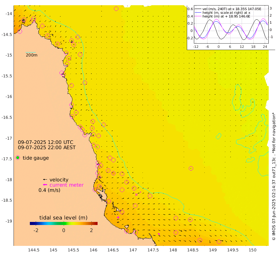 2cm/s -72T +11cm/s rms + 4cm/s -61T. GBRLSL 354m 4cm/s 64T +15cm/s rms + 2cm/s -84T. GBRLSH 32m 10cm/s 82T +15cm/s rms + 5cm/s -155T. GBRPPS 72m 2cm/s 80T +17cm/s rms + 13cm/s 115T. GBRMYR 223m 20cm/s 124T +18cm/s rms + 0cm/s -9T. NRSYON 29m 90cm Osprey Reef - West 105cm Stanley Island 67cm Pipon Islands 95cm Cape Melville 99cm Munro Reef 101cm Leggatt Island 111cm Normanby River 98cm Carter Reef 94cm Lizard Island (QLD) 108cm East Petherbridge Island 100cm North Direction Island 101cm Cape Flattery 94cm Ribbon Reef No.9 103cm Low Wooded Island 97cm Cape Bedford 62cm Endeavour River North 96cm Cooktown 91cm Cruiser Passage 94cm East Hope Island 97cm Bailay Creek 89cm Low Islets 98cm Port Douglas 96cm Palm Cove 91cm Yorkeys Knob 97cm Michaelmas Cay 93cm Euston Reef 100cm Cairns 91cm Green Island 81cm Fitzroy Island 95cm Sudbury Cay 89cm High Island 82cm Russell Island 91cm Peart Reef 84cm Nathan Reef 101cm Mourilyan Harbour 103cm Cowley Beach 100cm North Barnard Island 108cm Eddy Reef 130cm Beaver Reef 99cm Unnamed Reef No. 1 85cm Flinders Reef 105cm Clump Point 105cm Dunk Island 99cm Barnett Patches 111cm Goold Island 125cm Cardwell 97cm Britomart Reef 100cm Pith Reef 97cm Dip Reef 116cm Lucinda (Offshore) 99cm John Brewer Reef 117cm Albino Rock 104cm Shrimp Reef 96cm Jaguar Reef 120cm Townsville 115cm Cape Ferguson 120cm Stanley Reef 120cm Wallaby Reef 114cm Kennedy Reef
