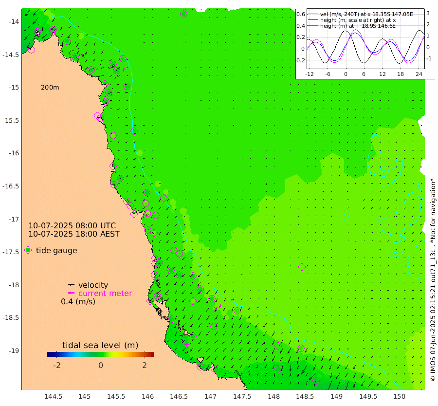0cm/s -170T +11cm/s rms + 4cm/s -61T. GBRLSL 354m 23cm/s -162T +15cm/s rms + 2cm/s -84T. GBRLSH 32m 22cm/s -140T +15cm/s rms + 5cm/s -155T. GBRPPS 72m 10cm/s -141T +17cm/s rms + 13cm/s 115T. GBRMYR 223m 16cm/s -150T +18cm/s rms + 0cm/s -9T. NRSYON 29m 6cm Osprey Reef - West 0cm Stanley Island -2cm Pipon Islands 0cm Cape Melville 2cm Munro Reef 0cm Leggatt Island -4cm Normanby River 11cm Carter Reef 9cm Lizard Island (QLD) -4cm East Petherbridge Island 1cm North Direction Island 11cm Cape Flattery 9cm Ribbon Reef No.9 5cm Low Wooded Island 2cm Cape Bedford -4cm Endeavour River North 10cm Cooktown 12cm Cruiser Passage 23cm East Hope Island -8cm Bailay Creek 9cm Low Islets 11cm Port Douglas 16cm Palm Cove 16cm Yorkeys Knob 7cm Michaelmas Cay 20cm Euston Reef 10cm Cairns 23cm Green Island 30cm Fitzroy Island 16cm Sudbury Cay 15cm High Island 23cm Russell Island 18cm Peart Reef 18cm Nathan Reef 10cm Mourilyan Harbour 13cm Cowley Beach -1cm North Barnard Island 5cm Eddy Reef 12cm Beaver Reef 15cm Unnamed Reef No. 1 28cm Flinders Reef 12cm Clump Point 14cm Dunk Island 13cm Barnett Patches 13cm Goold Island -2cm Cardwell 25cm Britomart Reef 13cm Pith Reef 18cm Dip Reef 9cm Lucinda (Offshore) 16cm John Brewer Reef 13cm Albino Rock 16cm Shrimp Reef 21cm Jaguar Reef 12cm Townsville 14cm Cape Ferguson -10cm Stanley Reef -15cm Wallaby Reef -5cm Kennedy Reef