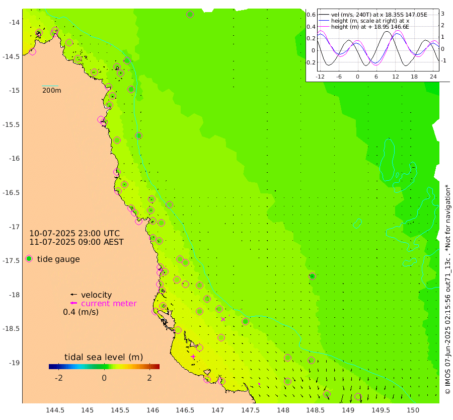 2cm/s 123T +11cm/s rms + 4cm/s -61T. GBRLSL 354m 2cm/s 105T +15cm/s rms + 2cm/s -84T. GBRLSH 32m 4cm/s 104T +15cm/s rms + 5cm/s -155T. GBRPPS 72m 2cm/s 161T +17cm/s rms + 13cm/s 115T. GBRMYR 223m 14cm/s 141T +18cm/s rms + 0cm/s -9T. NRSYON 29m 21cm Osprey Reef - West 36cm Stanley Island 41cm Pipon Islands 28cm Cape Melville 32cm Munro Reef 34cm Leggatt Island 46cm Normanby River 22cm Carter Reef 25cm Lizard Island (QLD) 33cm East Petherbridge Island 27cm North Direction Island 32cm Cape Flattery 22cm Ribbon Reef No.9 25cm Low Wooded Island 26cm Cape Bedford 15cm Endeavour River North 28cm Cooktown 20cm Cruiser Passage 28cm East Hope Island 28cm Bailay Creek 29cm Low Islets 31cm Port Douglas 29cm Palm Cove 25cm Yorkeys Knob 26cm Michaelmas Cay 27cm Euston Reef 33cm Cairns 24cm Green Island 32cm Fitzroy Island 30cm Sudbury Cay 28cm High Island 27cm Russell Island 27cm Peart Reef 25cm Nathan Reef 31cm Mourilyan Harbour 34cm Cowley Beach 36cm North Barnard Island 34cm Eddy Reef 43cm Beaver Reef 26cm Unnamed Reef No. 1 14cm Flinders Reef 35cm Clump Point 35cm Dunk Island 25cm Barnett Patches 37cm Goold Island 51cm Cardwell 30cm Britomart Reef 27cm Pith Reef 18cm Dip Reef 43cm Lucinda (Offshore) 33cm John Brewer Reef 47cm Albino Rock 26cm Shrimp Reef 24cm Jaguar Reef 47cm Townsville 41cm Cape Ferguson 27cm Stanley Reef 24cm Wallaby Reef 31cm Kennedy Reef