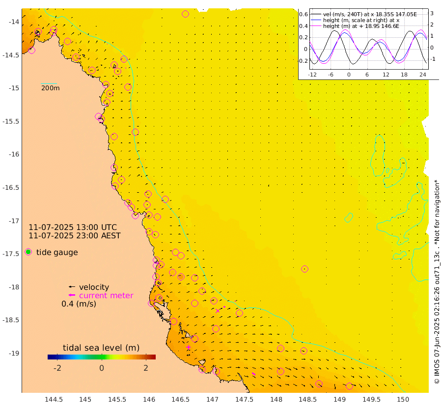 2cm/s -72T +11cm/s rms + 4cm/s -61T. GBRLSL 354m 5cm/s 48T +15cm/s rms + 2cm/s -84T. GBRLSH 32m 11cm/s 79T +15cm/s rms + 5cm/s -155T. GBRPPS 72m 3cm/s 71T +17cm/s rms + 13cm/s 115T. GBRMYR 223m 23cm/s 125T +18cm/s rms + 0cm/s -9T. NRSYON 29m 92cm Osprey Reef - West 112cm Stanley Island 76cm Pipon Islands 104cm Cape Melville 109cm Munro Reef 109cm Leggatt Island 119cm Normanby River 107cm Carter Reef 102cm Lizard Island (QLD) 112cm East Petherbridge Island 103cm North Direction Island 110cm Cape Flattery 100cm Ribbon Reef No.9 107cm Low Wooded Island 99cm Cape Bedford 60cm Endeavour River North 103cm Cooktown 96cm Cruiser Passage 104cm East Hope Island 102cm Bailay Creek 96cm Low Islets 105cm Port Douglas 102cm Palm Cove 97cm Yorkeys Knob 103cm Michaelmas Cay 96cm Euston Reef 108cm Cairns 96cm Green Island 99cm Fitzroy Island 103cm Sudbury Cay 96cm High Island 85cm Russell Island 97cm Peart Reef 92cm Nathan Reef 109cm Mourilyan Harbour 109cm Cowley Beach 113cm North Barnard Island 115cm Eddy Reef 140cm Beaver Reef 104cm Unnamed Reef No. 1 91cm Flinders Reef 112cm Clump Point 113cm Dunk Island 105cm Barnett Patches 118cm Goold Island 135cm Cardwell 104cm Britomart Reef 108cm Pith Reef 103cm Dip Reef 124cm Lucinda (Offshore) 111cm John Brewer Reef 123cm Albino Rock 114cm Shrimp Reef 102cm Jaguar Reef 128cm Townsville 122cm Cape Ferguson 125cm Stanley Reef 129cm Wallaby Reef 120cm Kennedy Reef