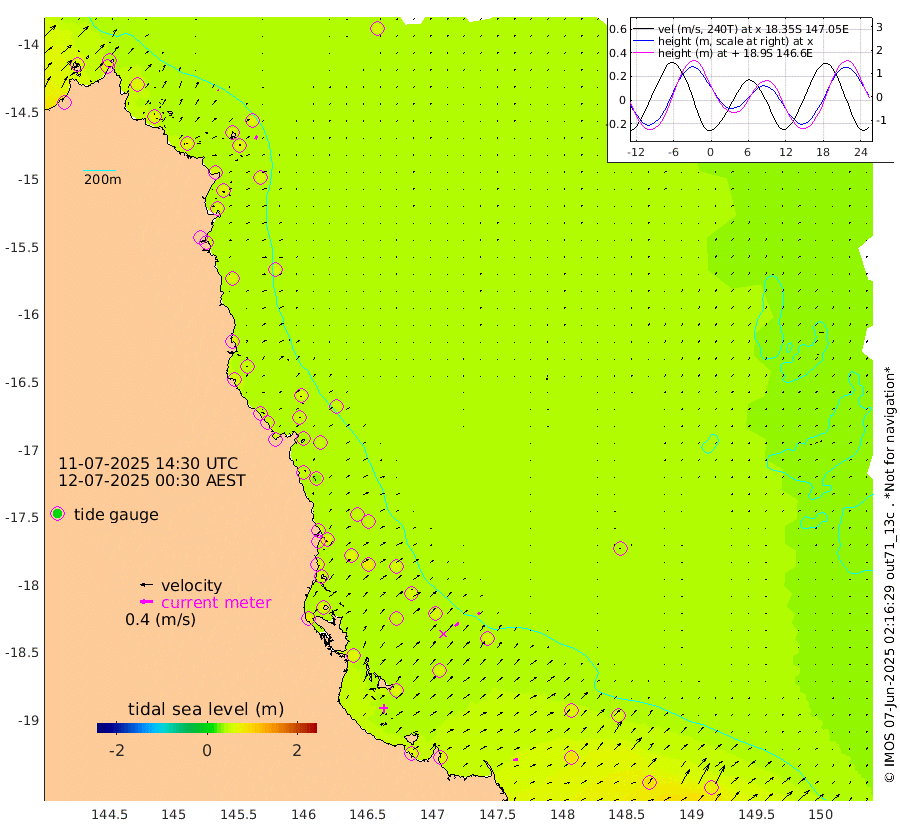 2cm/s -63T +11cm/s rms + 4cm/s -61T. GBRLSL 354m 13cm/s 25T +15cm/s rms + 2cm/s -84T. GBRLSH 32m 16cm/s 52T +15cm/s rms + 5cm/s -155T. GBRPPS 72m 7cm/s 41T +17cm/s rms + 13cm/s 115T. GBRMYR 223m 13cm/s 81T +18cm/s rms + 0cm/s -9T. NRSYON 29m 53cm Osprey Reef - West 64cm Stanley Island 38cm Pipon Islands 62cm Cape Melville 64cm Munro Reef 63cm Leggatt Island 65cm Normanby River 64cm Carter Reef 58cm Lizard Island (QLD) 68cm East Petherbridge Island 63cm North Direction Island 60cm Cape Flattery 57cm Ribbon Reef No.9 63cm Low Wooded Island 59cm Cape Bedford 36cm Endeavour River North 57cm Cooktown 54cm Cruiser Passage 53cm East Hope Island 66cm Bailay Creek 52cm Low Islets 56cm Port Douglas 52cm Palm Cove 50cm Yorkeys Knob 58cm Michaelmas Cay 48cm Euston Reef 58cm Cairns 46cm Green Island 42cm Fitzroy Island 52cm Sudbury Cay 48cm High Island 37cm Russell Island 47cm Peart Reef 45cm Nathan Reef 59cm Mourilyan Harbour 57cm Cowley Beach 65cm North Barnard Island 65cm Eddy Reef 76cm Beaver Reef 55cm Unnamed Reef No. 1 45cm Flinders Reef 59cm Clump Point 58cm Dunk Island 58cm Barnett Patches 60cm Goold Island 75cm Cardwell 49cm Britomart Reef 58cm Pith Reef 55cm Dip Reef 64cm Lucinda (Offshore) 58cm John Brewer Reef 61cm Albino Rock 63cm Shrimp Reef 53cm Jaguar Reef 64cm Townsville 62cm Cape Ferguson 83cm Stanley Reef 90cm Wallaby Reef 75cm Kennedy Reef