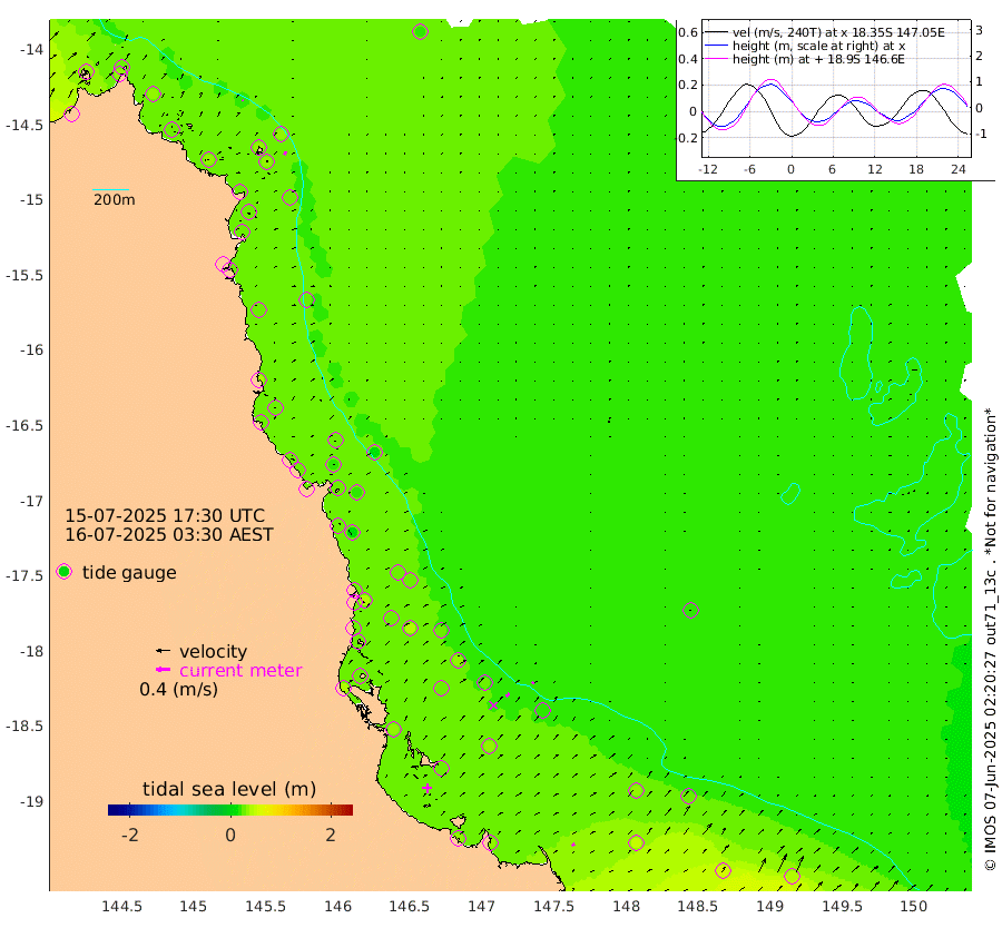 2cm/s -51T +11cm/s rms + 4cm/s -61T. GBRLSL 354m 11cm/s 23T +15cm/s rms + 2cm/s -84T. GBRLSH 32m 13cm/s 47T +15cm/s rms + 5cm/s -155T. GBRPPS 72m 6cm/s 44T +17cm/s rms + 13cm/s 115T. GBRMYR 223m 10cm/s 60T +18cm/s rms + 0cm/s -9T. NRSYON 29m 19cm Osprey Reef - West 32cm Stanley Island 25cm Pipon Islands 32cm Cape Melville 36cm Munro Reef 30cm Leggatt Island 33cm Normanby River 32cm Carter Reef 32cm Lizard Island (QLD) 33cm East Petherbridge Island 32cm North Direction Island 28cm Cape Flattery 25cm Ribbon Reef No.9 29cm Low Wooded Island 28cm Cape Bedford 14cm Endeavour River North 28cm Cooktown 23cm Cruiser Passage 30cm East Hope Island 39cm Bailay Creek 28cm Low Islets 27cm Port Douglas 24cm Palm Cove 24cm Yorkeys Knob 23cm Michaelmas Cay 14cm Euston Reef 28cm Cairns 18cm Green Island 23cm Fitzroy Island 22cm Sudbury Cay 23cm High Island 12cm Russell Island 23cm Peart Reef 23cm Nathan Reef 29cm Mourilyan Harbour 28cm Cowley Beach 41cm North Barnard Island 27cm Eddy Reef 39cm Beaver Reef 23cm Unnamed Reef No. 1 16cm Flinders Reef 28cm Clump Point 28cm Dunk Island 32cm Barnett Patches 29cm Goold Island 39cm Cardwell 23cm Britomart Reef 26cm Pith Reef 20cm Dip Reef 31cm Lucinda (Offshore) 34cm John Brewer Reef 28cm Albino Rock 35cm Shrimp Reef 23cm Jaguar Reef 31cm Townsville 30cm Cape Ferguson 48cm Stanley Reef 55cm Wallaby Reef 39cm Kennedy Reef