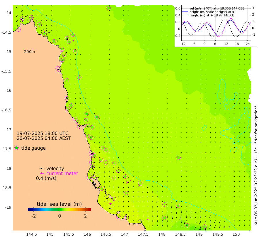 2cm/s -74T +11cm/s rms + 4cm/s -61T. GBRLSL 354m 11cm/s -165T +15cm/s rms + 2cm/s -84T. GBRLSH 32m 9cm/s -155T +15cm/s rms + 5cm/s -155T. GBRPPS 72m 5cm/s -152T +17cm/s rms + 13cm/s 115T. GBRMYR 223m 13cm/s 168T +18cm/s rms + 0cm/s -9T. NRSYON 29m 25cm Osprey Reef - West 23cm Stanley Island 35cm Pipon Islands 24cm Cape Melville 27cm Munro Reef 27cm Leggatt Island 31cm Normanby River 25cm Carter Reef 29cm Lizard Island (QLD) 24cm East Petherbridge Island 24cm North Direction Island 29cm Cape Flattery 30cm Ribbon Reef No.9 44cm Low Wooded Island 23cm Cape Bedford 14cm Endeavour River North 30cm Cooktown 32cm Cruiser Passage 32cm East Hope Island 29cm Bailay Creek 30cm Low Islets 31cm Port Douglas 35cm Palm Cove 35cm Yorkeys Knob 22cm Michaelmas Cay 17cm Euston Reef 33cm Cairns 30cm Green Island 32cm Fitzroy Island 27cm Sudbury Cay 34cm High Island 26cm Russell Island 33cm Peart Reef 33cm Nathan Reef 31cm Mourilyan Harbour 32cm Cowley Beach 27cm North Barnard Island 31cm Eddy Reef 41cm Beaver Reef 31cm Unnamed Reef No. 1 27cm Flinders Reef 34cm Clump Point 37cm Dunk Island 32cm Barnett Patches 39cm Goold Island 35cm Cardwell 41cm Britomart Reef 26cm Pith Reef 32cm Dip Reef 37cm Lucinda (Offshore) 34cm John Brewer Reef 38cm Albino Rock 31cm Shrimp Reef 27cm Jaguar Reef 40cm Townsville 38cm Cape Ferguson 30cm Stanley Reef 20cm Wallaby Reef 27cm Kennedy Reef
