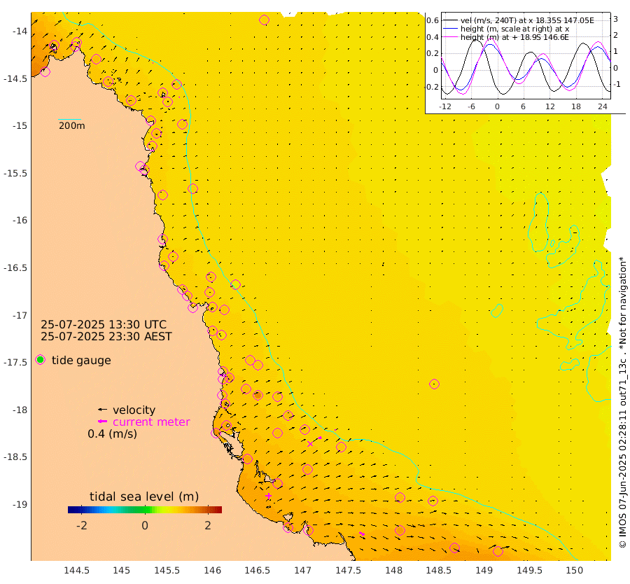 3cm/s -72T +11cm/s rms + 4cm/s -61T. GBRLSL 354m 4cm/s 55T +15cm/s rms + 2cm/s -84T. GBRLSH 32m 15cm/s 71T +15cm/s rms + 5cm/s -155T. GBRPPS 72m 5cm/s 65T +17cm/s rms + 13cm/s 115T. GBRMYR 223m 25cm/s 119T +18cm/s rms + 0cm/s -9T. NRSYON 29m 101cm Osprey Reef - West 119cm Stanley Island 90cm Pipon Islands 107cm Cape Melville 116cm Munro Reef 120cm Leggatt Island 135cm Normanby River 110cm Carter Reef 109cm Lizard Island (QLD) 113cm East Petherbridge Island 105cm North Direction Island 111cm Cape Flattery 108cm Ribbon Reef No.9 117cm Low Wooded Island 99cm Cape Bedford 77cm Endeavour River North 109cm Cooktown 104cm Cruiser Passage 101cm East Hope Island 109cm Bailay Creek 103cm Low Islets 111cm Port Douglas 110cm Palm Cove 113cm Yorkeys Knob 107cm Michaelmas Cay 78cm Euston Reef 115cm Cairns 102cm Green Island 100cm Fitzroy Island 107cm Sudbury Cay 107cm High Island 89cm Russell Island 110cm Peart Reef 105cm Nathan Reef 115cm Mourilyan Harbour 113cm Cowley Beach 128cm North Barnard Island 117cm Eddy Reef 152cm Beaver Reef 111cm Unnamed Reef No. 1 92cm Flinders Reef 119cm Clump Point 126cm Dunk Island 114cm Barnett Patches 129cm Goold Island 145cm Cardwell 113cm Britomart Reef 107cm Pith Reef 111cm Dip Reef 132cm Lucinda (Offshore) 123cm John Brewer Reef 127cm Albino Rock 113cm Shrimp Reef 99cm Jaguar Reef 137cm Townsville 130cm Cape Ferguson 139cm Stanley Reef 135cm Wallaby Reef 120cm Kennedy Reef