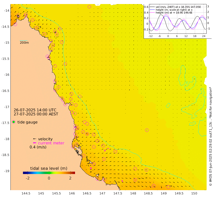 3cm/s -71T +11cm/s rms + 4cm/s -61T. GBRLSL 354m 3cm/s 52T +15cm/s rms + 2cm/s -84T. GBRLSH 32m 13cm/s 71T +15cm/s rms + 5cm/s -155T. GBRPPS 72m 4cm/s 68T +17cm/s rms + 13cm/s 115T. GBRMYR 223m 23cm/s 121T +18cm/s rms + 0cm/s -9T. NRSYON 29m 92cm Osprey Reef - West 105cm Stanley Island 83cm Pipon Islands 96cm Cape Melville 103cm Munro Reef 107cm Leggatt Island 121cm Normanby River 98cm Carter Reef 97cm Lizard Island (QLD) 101cm East Petherbridge Island 94cm North Direction Island 98cm Cape Flattery 98cm Ribbon Reef No.9 109cm Low Wooded Island 88cm Cape Bedford 70cm Endeavour River North 98cm Cooktown 95cm Cruiser Passage 89cm East Hope Island 99cm Bailay Creek 92cm Low Islets 100cm Port Douglas 99cm Palm Cove 101cm Yorkeys Knob 96cm Michaelmas Cay 69cm Euston Reef 103cm Cairns 91cm Green Island 87cm Fitzroy Island 95cm Sudbury Cay 95cm High Island 78cm Russell Island 97cm Peart Reef 94cm Nathan Reef 104cm Mourilyan Harbour 101cm Cowley Beach 113cm North Barnard Island 107cm Eddy Reef 136cm Beaver Reef 100cm Unnamed Reef No. 1 82cm Flinders Reef 107cm Clump Point 113cm Dunk Island 103cm Barnett Patches 116cm Goold Island 130cm Cardwell 102cm Britomart Reef 97cm Pith Reef 101cm Dip Reef 119cm Lucinda (Offshore) 107cm John Brewer Reef 115cm Albino Rock 101cm Shrimp Reef 90cm Jaguar Reef 123cm Townsville 117cm Cape Ferguson 126cm Stanley Reef 122cm Wallaby Reef 109cm Kennedy Reef