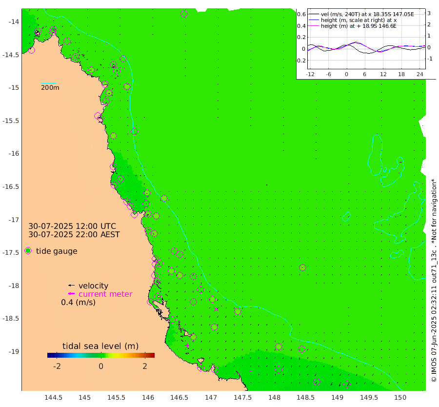 2cm/s -86T +11cm/s rms + 4cm/s -61T. GBRLSL 354m 4cm/s -157T +15cm/s rms + 2cm/s -84T. GBRLSH 32m 5cm/s -154T +15cm/s rms + 5cm/s -155T. GBRPPS 72m 2cm/s -137T +17cm/s rms + 13cm/s 115T. GBRMYR 223m 6cm/s 180T +18cm/s rms + 0cm/s -9T. NRSYON 29m 18cm Osprey Reef - West 21cm Stanley Island -4cm Pipon Islands 21cm Cape Melville 20cm Munro Reef 20cm Leggatt Island 20cm Normanby River 22cm Carter Reef 19cm Lizard Island (QLD) 23cm East Petherbridge Island 20cm North Direction Island 29cm Cape Flattery 23cm Ribbon Reef No.9 24cm Low Wooded Island 21cm Cape Bedford 8cm Endeavour River North 21cm Cooktown 22cm Cruiser Passage 27cm East Hope Island 11cm Bailay Creek 21cm Low Islets 20cm Port Douglas 20cm Palm Cove 16cm Yorkeys Knob 24cm Michaelmas Cay 30cm Euston Reef 21cm Cairns 22cm Green Island 30cm Fitzroy Island 25cm Sudbury Cay 18cm High Island 25cm Russell Island 21cm Peart Reef 17cm Nathan Reef 20cm Mourilyan Harbour 20cm Cowley Beach 17cm North Barnard Island 26cm Eddy Reef 27cm Beaver Reef 21cm Unnamed Reef No. 1 29cm Flinders Reef 21cm Clump Point 19cm Dunk Island 18cm Barnett Patches 19cm Goold Island 21cm Cardwell 19cm Britomart Reef 25cm Pith Reef 27cm Dip Reef 21cm Lucinda (Offshore) 24cm John Brewer Reef 23cm Albino Rock 23cm Shrimp Reef 20cm Jaguar Reef 21cm Townsville 20cm Cape Ferguson 8cm Stanley Reef 9cm Wallaby Reef 11cm Kennedy Reef