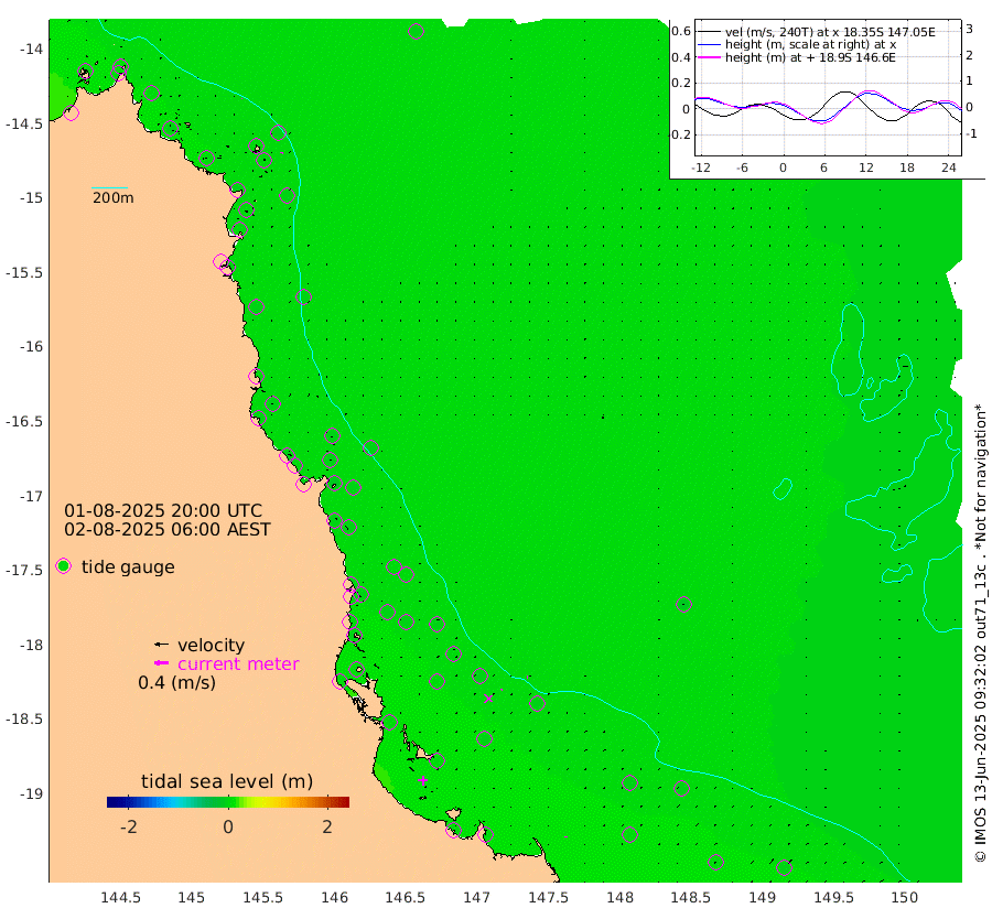 0cm/s 129T +11cm/s rms + 4cm/s -61T. GBRLSL 354m 3cm/s 28T +15cm/s rms + 2cm/s -84T. GBRLSH 32m 3cm/s 49T +15cm/s rms + 5cm/s -155T. GBRPPS 72m 1cm/s 102T +17cm/s rms + 13cm/s 115T. GBRMYR 223m 3cm/s 4T +18cm/s rms + 0cm/s -9T. NRSYON 29m -4cm Osprey Reef - West 3cm Stanley Island 15cm Pipon Islands 2cm Cape Melville 1cm Munro Reef 0cm Leggatt Island 6cm Normanby River -1cm Carter Reef 0cm Lizard Island (QLD) 5cm East Petherbridge Island 5cm North Direction Island -4cm Cape Flattery -2cm Ribbon Reef No.9 2cm Low Wooded Island 3cm Cape Bedford -9cm Endeavour River North -1cm Cooktown -3cm Cruiser Passage -6cm East Hope Island 7cm Bailay Creek -1cm Low Islets 0cm Port Douglas 0cm Palm Cove 1cm Yorkeys Knob -6cm Michaelmas Cay -7cm Euston Reef 0cm Cairns -3cm Green Island -9cm Fitzroy Island -5cm Sudbury Cay -3cm High Island -3cm Russell Island 1cm Peart Reef 0cm Nathan Reef -1cm Mourilyan Harbour 2cm Cowley Beach -5cm North Barnard Island -5cm Eddy Reef -3cm Beaver Reef -2cm Unnamed Reef No. 1 -9cm Flinders Reef 0cm Clump Point -1cm Dunk Island 2cm Barnett Patches 1cm Goold Island 3cm Cardwell 3cm Britomart Reef -6cm Pith Reef -7cm Dip Reef 2cm Lucinda (Offshore) -1cm John Brewer Reef 3cm Albino Rock -4cm Shrimp Reef -6cm Jaguar Reef 4cm Townsville 3cm Cape Ferguson 6cm Stanley Reef 4cm Wallaby Reef -1cm Kennedy Reef