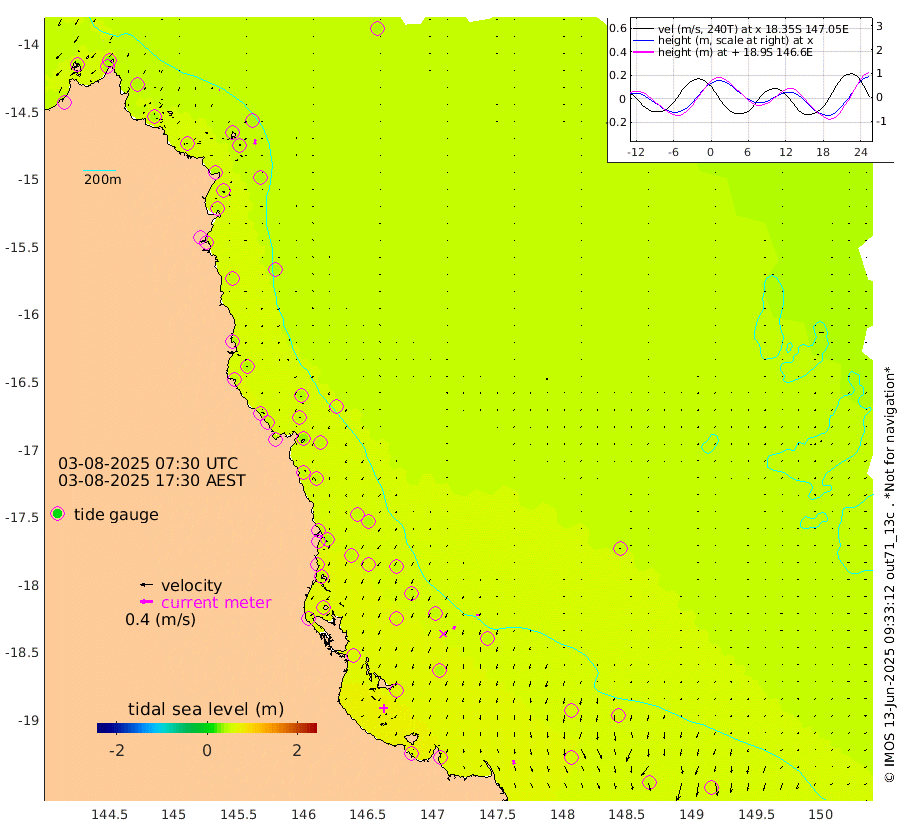 1cm/s 78T +11cm/s rms + 4cm/s -61T. GBRLSL 354m 15cm/s -171T +15cm/s rms + 2cm/s -84T. GBRLSH 32m 9cm/s -161T +15cm/s rms + 5cm/s -155T. GBRPPS 72m 5cm/s -152T +17cm/s rms + 13cm/s 115T. GBRMYR 223m 12cm/s 167T +18cm/s rms + 0cm/s -9T. NRSYON 29m 44cm Osprey Reef - West 44cm Stanley Island 32cm Pipon Islands 40cm Cape Melville 40cm Munro Reef 41cm Leggatt Island 41cm Normanby River 42cm Carter Reef 46cm Lizard Island (QLD) 48cm East Petherbridge Island 49cm North Direction Island 45cm Cape Flattery 43cm Ribbon Reef No.9 48cm Low Wooded Island 49cm Cape Bedford 32cm Endeavour River North 47cm Cooktown 44cm Cruiser Passage 50cm East Hope Island 44cm Bailay Creek 42cm Low Islets 49cm Port Douglas 50cm Palm Cove 46cm Yorkeys Knob 45cm Michaelmas Cay 57cm Euston Reef 49cm Cairns 50cm Green Island 36cm Fitzroy Island 46cm Sudbury Cay 48cm High Island 47cm Russell Island 46cm Peart Reef 43cm Nathan Reef 50cm Mourilyan Harbour 55cm Cowley Beach 38cm North Barnard Island 50cm Eddy Reef 61cm Beaver Reef 52cm Unnamed Reef No. 1 47cm Flinders Reef 53cm Clump Point 52cm Dunk Island 52cm Barnett Patches 58cm Goold Island 54cm Cardwell 57cm Britomart Reef 51cm Pith Reef 49cm Dip Reef 57cm Lucinda (Offshore) 44cm John Brewer Reef 60cm Albino Rock 56cm Shrimp Reef 59cm Jaguar Reef 62cm Townsville 62cm Cape Ferguson 57cm Stanley Reef 51cm Wallaby Reef 63cm Kennedy Reef