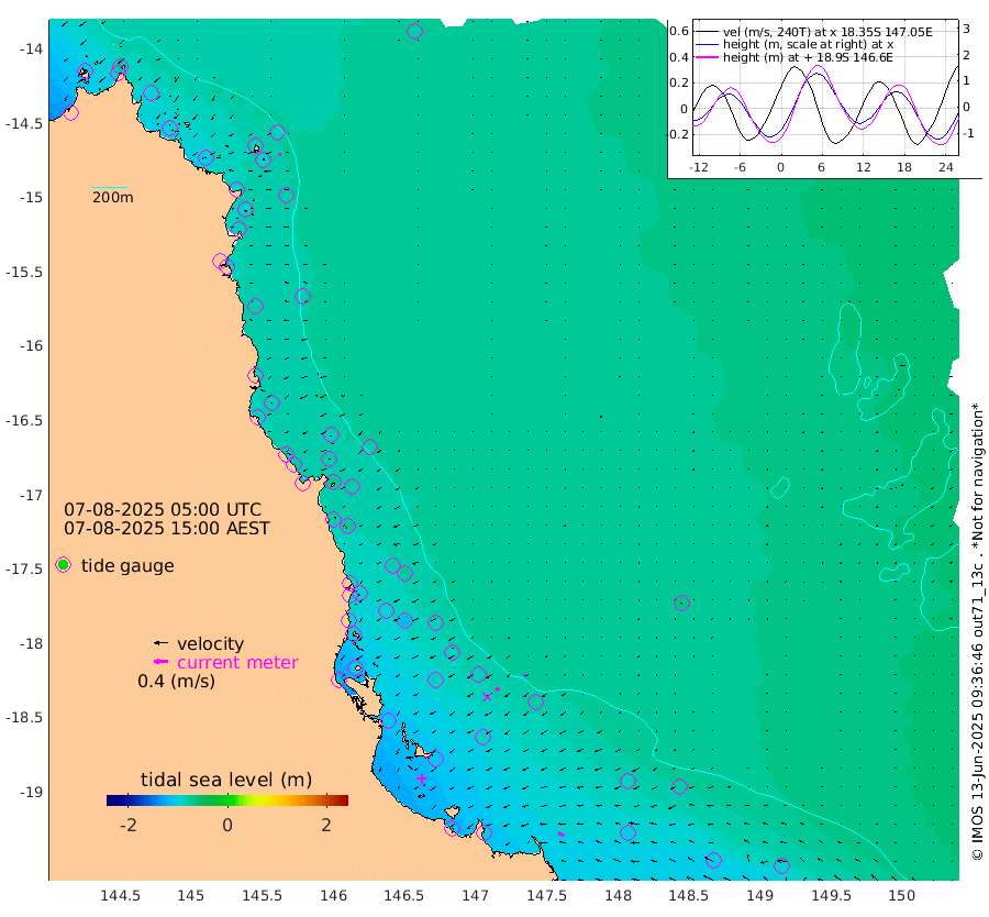 0cm/s 73T +11cm/s rms + 4cm/s -61T. GBRLSL 354m 7cm/s -143T +15cm/s rms + 2cm/s -84T. GBRLSH 32m 12cm/s -108T +15cm/s rms + 5cm/s -155T. GBRPPS 72m 4cm/s -110T +17cm/s rms + 13cm/s 115T. GBRMYR 223m 18cm/s -64T +18cm/s rms + 0cm/s -9T. NRSYON 29m -76cm Osprey Reef - West -100cm Stanley Island -70cm Pipon Islands -86cm Cape Melville -93cm Munro Reef -94cm Leggatt Island -108cm Normanby River -85cm Carter Reef -83cm Lizard Island (QLD) -103cm East Petherbridge Island -92cm North Direction Island -90cm Cape Flattery -82cm Ribbon Reef No.9 -94cm Low Wooded Island -89cm Cape Bedford -52cm Endeavour River North -86cm Cooktown -78cm Cruiser Passage -82cm East Hope Island -93cm Bailay Creek -83cm Low Islets -88cm Port Douglas -84cm Palm Cove -79cm Yorkeys Knob -84cm Michaelmas Cay -79cm Euston Reef -91cm Cairns -77cm Green Island -68cm Fitzroy Island -82cm Sudbury Cay -78cm High Island -73cm Russell Island -81cm Peart Reef -74cm Nathan Reef -90cm Mourilyan Harbour -92cm Cowley Beach -91cm North Barnard Island -96cm Eddy Reef -118cm Beaver Reef -83cm Unnamed Reef No. 1 -63cm Flinders Reef -94cm Clump Point -93cm Dunk Island -85cm Barnett Patches -99cm Goold Island -119cm Cardwell -84cm Britomart Reef -84cm Pith Reef -77cm Dip Reef -106cm Lucinda (Offshore) -90cm John Brewer Reef -106cm Albino Rock -87cm Shrimp Reef -76cm Jaguar Reef -111cm Townsville -103cm Cape Ferguson -104cm Stanley Reef -100cm Wallaby Reef -95cm Kennedy Reef