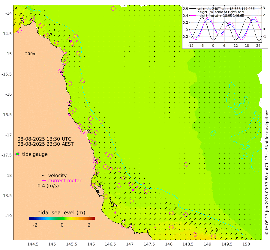 2cm/s -64T +11cm/s rms + 4cm/s -61T. GBRLSL 354m 14cm/s 24T +15cm/s rms + 2cm/s -84T. GBRLSH 32m 19cm/s 50T +15cm/s rms + 5cm/s -155T. GBRPPS 72m 8cm/s 41T +17cm/s rms + 13cm/s 115T. GBRMYR 223m 16cm/s 81T +18cm/s rms + 0cm/s -9T. NRSYON 29m 53cm Osprey Reef - West 67cm Stanley Island 39cm Pipon Islands 62cm Cape Melville 66cm Munro Reef 65cm Leggatt Island 71cm Normanby River 64cm Carter Reef 57cm Lizard Island (QLD) 70cm East Petherbridge Island 63cm North Direction Island 61cm Cape Flattery 57cm Ribbon Reef No.9 61cm Low Wooded Island 59cm Cape Bedford 37cm Endeavour River North 57cm Cooktown 53cm Cruiser Passage 51cm East Hope Island 66cm Bailay Creek 52cm Low Islets 56cm Port Douglas 52cm Palm Cove 49cm Yorkeys Knob 58cm Michaelmas Cay 46cm Euston Reef 58cm Cairns 45cm Green Island 40cm Fitzroy Island 52cm Sudbury Cay 45cm High Island 34cm Russell Island 47cm Peart Reef 45cm Nathan Reef 60cm Mourilyan Harbour 57cm Cowley Beach 66cm North Barnard Island 67cm Eddy Reef 78cm Beaver Reef 54cm Unnamed Reef No. 1 43cm Flinders Reef 59cm Clump Point 59cm Dunk Island 57cm Barnett Patches 61cm Goold Island 79cm Cardwell 47cm Britomart Reef 57cm Pith Reef 54cm Dip Reef 66cm Lucinda (Offshore) 58cm John Brewer Reef 63cm Albino Rock 61cm Shrimp Reef 51cm Jaguar Reef 66cm Townsville 63cm Cape Ferguson 83cm Stanley Reef 91cm Wallaby Reef 74cm Kennedy Reef