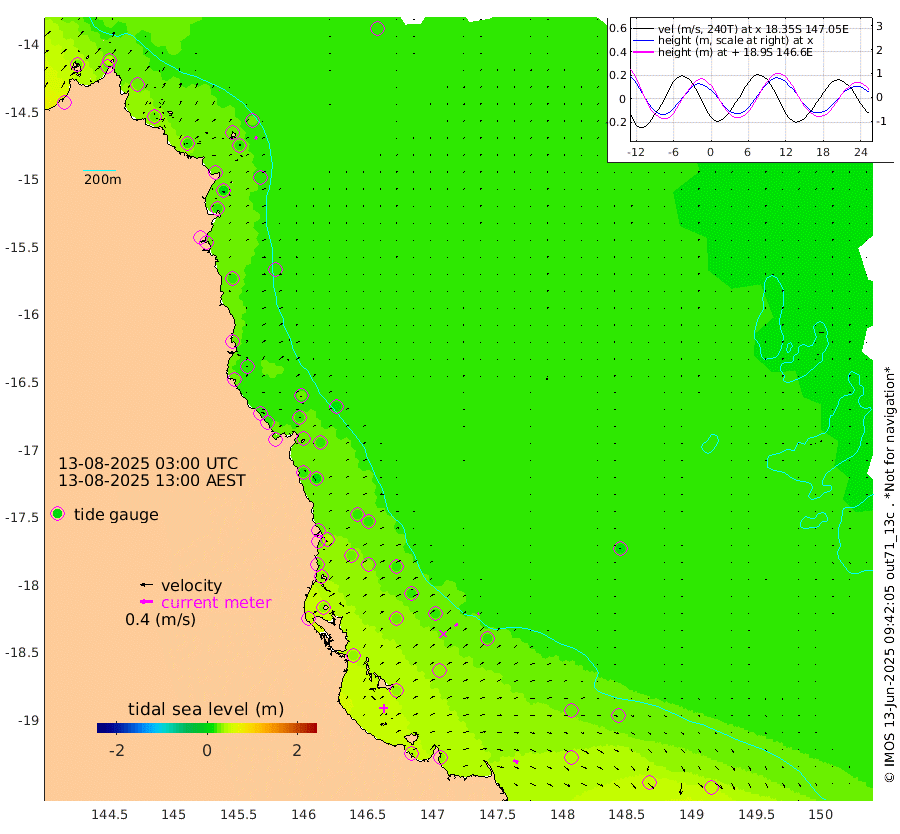 2cm/s 92T +11cm/s rms + 4cm/s -61T. GBRLSL 354m 9cm/s 26T +15cm/s rms + 2cm/s -84T. GBRLSH 32m 11cm/s 55T +15cm/s rms + 5cm/s -155T. GBRPPS 72m 3cm/s 55T +17cm/s rms + 13cm/s 115T. GBRMYR 223m 16cm/s 117T +18cm/s rms + 0cm/s -9T. NRSYON 29m 18cm Osprey Reef - West 26cm Stanley Island 40cm Pipon Islands 26cm Cape Melville 29cm Munro Reef 29cm Leggatt Island 32cm Normanby River 26cm Carter Reef 23cm Lizard Island (QLD) 19cm East Petherbridge Island 16cm North Direction Island 25cm Cape Flattery 19cm Ribbon Reef No.9 15cm Low Wooded Island 16cm Cape Bedford 9cm Endeavour River North 23cm Cooktown 16cm Cruiser Passage 20cm East Hope Island 23cm Bailay Creek 20cm Low Islets 25cm Port Douglas 22cm Palm Cove 20cm Yorkeys Knob 24cm Michaelmas Cay 13cm Euston Reef 27cm Cairns 15cm Green Island 29cm Fitzroy Island 22cm Sudbury Cay 22cm High Island 9cm Russell Island 17cm Peart Reef 19cm Nathan Reef 28cm Mourilyan Harbour 25cm Cowley Beach 41cm North Barnard Island 29cm Eddy Reef 35cm Beaver Reef 21cm Unnamed Reef No. 1 14cm Flinders Reef 29cm Clump Point 34cm Dunk Island 18cm Barnett Patches 32cm Goold Island 46cm Cardwell 24cm Britomart Reef 21cm Pith Reef 16cm Dip Reef 36cm Lucinda (Offshore) 31cm John Brewer Reef 33cm Albino Rock 27cm Shrimp Reef 26cm Jaguar Reef 39cm Townsville 35cm Cape Ferguson 39cm Stanley Reef 46cm Wallaby Reef 46cm Kennedy Reef