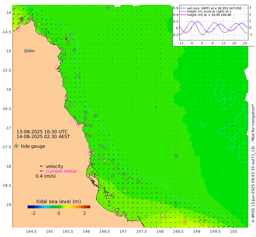 2cm/s -57T +11cm/s rms + 4cm/s -61T. GBRLSL 354m 11cm/s 19T +15cm/s rms + 2cm/s -84T. GBRLSH 32m 14cm/s 46T +15cm/s rms + 5cm/s -155T. GBRPPS 72m 5cm/s 45T +17cm/s rms + 13cm/s 115T. GBRMYR 223m 11cm/s 81T +18cm/s rms + 0cm/s -9T. NRSYON 29m 10cm Osprey Reef - West 20cm Stanley Island 25cm Pipon Islands 21cm Cape Melville 24cm Munro Reef 21cm Leggatt Island 26cm Normanby River 19cm Carter Reef 21cm Lizard Island (QLD) 19cm East Petherbridge Island 17cm North Direction Island 18cm Cape Flattery 14cm Ribbon Reef No.9 18cm Low Wooded Island 14cm Cape Bedford 13cm Endeavour River North 17cm Cooktown 13cm Cruiser Passage 17cm East Hope Island 27cm Bailay Creek 18cm Low Islets 17cm Port Douglas 14cm Palm Cove 15cm Yorkeys Knob 12cm Michaelmas Cay -3cm Euston Reef 18cm Cairns 7cm Green Island 16cm Fitzroy Island 12cm Sudbury Cay 14cm High Island 0cm Russell Island 13cm Peart Reef 14cm Nathan Reef 19cm Mourilyan Harbour 17cm Cowley Beach 36cm North Barnard Island 17cm Eddy Reef 27cm Beaver Reef 13cm Unnamed Reef No. 1 5cm Flinders Reef 18cm Clump Point 20cm Dunk Island 20cm Barnett Patches 20cm Goold Island 30cm Cardwell 12cm Britomart Reef 14cm Pith Reef 10cm Dip Reef 22cm Lucinda (Offshore) 25cm John Brewer Reef 19cm Albino Rock 24cm Shrimp Reef 13cm Jaguar Reef 23cm Townsville 21cm Cape Ferguson 38cm Stanley Reef 45cm Wallaby Reef 32cm Kennedy Reef