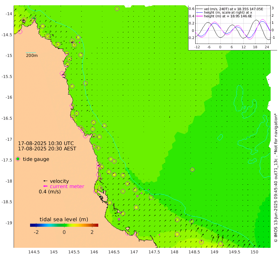 0cm/s -66T +11cm/s rms + 4cm/s -61T. GBRLSL 354m 13cm/s 23T +15cm/s rms + 2cm/s -84T. GBRLSH 32m 13cm/s 52T +15cm/s rms + 5cm/s -155T. GBRPPS 72m 7cm/s 46T +17cm/s rms + 13cm/s 115T. GBRMYR 223m 10cm/s 38T +18cm/s rms + 0cm/s -9T. NRSYON 29m 36cm Osprey Reef - West 56cm Stanley Island 14cm Pipon Islands 47cm Cape Melville 48cm Munro Reef 48cm Leggatt Island 52cm Normanby River 51cm Carter Reef 43cm Lizard Island (QLD) 56cm East Petherbridge Island 49cm North Direction Island 48cm Cape Flattery 41cm Ribbon Reef No.9 41cm Low Wooded Island 49cm Cape Bedford 22cm Endeavour River North 43cm Cooktown 37cm Cruiser Passage 43cm East Hope Island 45cm Bailay Creek 41cm Low Islets 42cm Port Douglas 38cm Palm Cove 37cm Yorkeys Knob 47cm Michaelmas Cay 42cm Euston Reef 43cm Cairns 38cm Green Island 32cm Fitzroy Island 42cm Sudbury Cay 36cm High Island 38cm Russell Island 42cm Peart Reef 35cm Nathan Reef 43cm Mourilyan Harbour 43cm Cowley Beach 49cm North Barnard Island 41cm Eddy Reef 56cm Beaver Reef 39cm Unnamed Reef No. 1 35cm Flinders Reef 43cm Clump Point 45cm Dunk Island 41cm Barnett Patches 45cm Goold Island 55cm Cardwell 37cm Britomart Reef 40cm Pith Reef 37cm Dip Reef 48cm Lucinda (Offshore) 52cm John Brewer Reef 43cm Albino Rock 45cm Shrimp Reef 34cm Jaguar Reef 48cm Townsville 45cm Cape Ferguson 56cm Stanley Reef 55cm Wallaby Reef 42cm Kennedy Reef