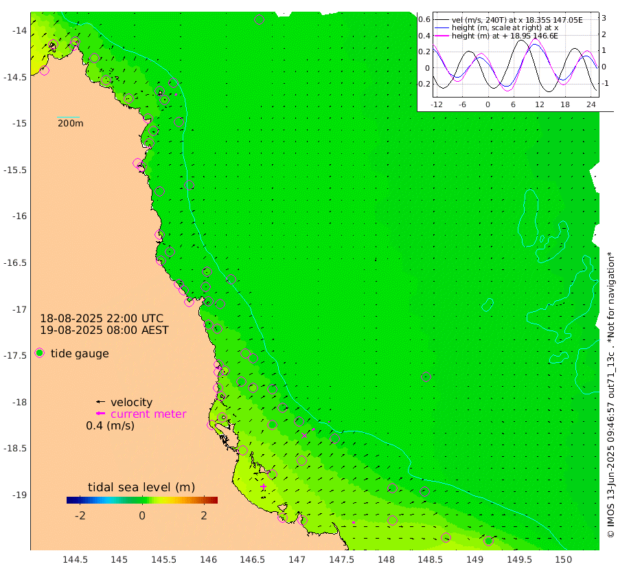 1cm/s 132T +11cm/s rms + 4cm/s -61T. GBRLSL 354m 11cm/s 22T +15cm/s rms + 2cm/s -84T. GBRLSH 32m 12cm/s 55T +15cm/s rms + 5cm/s -155T. GBRPPS 72m 5cm/s 70T +17cm/s rms + 13cm/s 115T. GBRMYR 223m 11cm/s 100T +18cm/s rms + 0cm/s -9T. NRSYON 29m 5cm Osprey Reef - West 32cm Stanley Island 34cm Pipon Islands 20cm Cape Melville 23cm Munro Reef 24cm Leggatt Island 45cm Normanby River 15cm Carter Reef 14cm Lizard Island (QLD) 27cm East Petherbridge Island 19cm North Direction Island 19cm Cape Flattery 10cm Ribbon Reef No.9 12cm Low Wooded Island 18cm Cape Bedford 5cm Endeavour River North 16cm Cooktown 6cm Cruiser Passage 8cm East Hope Island 24cm Bailay Creek 15cm Low Islets 17cm Port Douglas 12cm Palm Cove 13cm Yorkeys Knob 16cm Michaelmas Cay 5cm Euston Reef 18cm Cairns 10cm Green Island 12cm Fitzroy Island 13cm Sudbury Cay 12cm High Island 14cm Russell Island 18cm Peart Reef 12cm Nathan Reef 17cm Mourilyan Harbour 21cm Cowley Beach 33cm North Barnard Island 11cm Eddy Reef 25cm Beaver Reef 10cm Unnamed Reef No. 1 -4cm Flinders Reef 21cm Clump Point 25cm Dunk Island 14cm Barnett Patches 24cm Goold Island 41cm Cardwell 15cm Britomart Reef 9cm Pith Reef -1cm Dip Reef 30cm Lucinda (Offshore) 28cm John Brewer Reef 28cm Albino Rock 11cm Shrimp Reef 4cm Jaguar Reef 33cm Townsville 27cm Cape Ferguson 29cm Stanley Reef 28cm Wallaby Reef 13cm Kennedy Reef