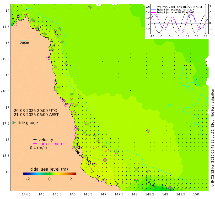 1cm/s 134T +11cm/s rms + 4cm/s -61T. GBRLSL 354m 19cm/s -166T +15cm/s rms + 2cm/s -84T. GBRLSH 32m 16cm/s -147T +15cm/s rms + 5cm/s -155T. GBRPPS 72m 8cm/s -150T +17cm/s rms + 13cm/s 115T. GBRMYR 223m 14cm/s -164T +18cm/s rms + 0cm/s -9T. NRSYON 29m 22cm Osprey Reef - West 21cm Stanley Island 35cm Pipon Islands 21cm Cape Melville 20cm Munro Reef 21cm Leggatt Island 22cm Normanby River 20cm Carter Reef 23cm Lizard Island (QLD) 22cm East Petherbridge Island 23cm North Direction Island 24cm Cape Flattery 22cm Ribbon Reef No.9 29cm Low Wooded Island 22cm Cape Bedford 2cm Endeavour River North 25cm Cooktown 24cm Cruiser Passage 29cm East Hope Island 16cm Bailay Creek 25cm Low Islets 28cm Port Douglas 32cm Palm Cove 30cm Yorkeys Knob 19cm Michaelmas Cay 30cm Euston Reef 29cm Cairns 31cm Green Island 30cm Fitzroy Island 25cm Sudbury Cay 31cm High Island 32cm Russell Island 30cm Peart Reef 30cm Nathan Reef 27cm Mourilyan Harbour 30cm Cowley Beach 9cm North Barnard Island 26cm Eddy Reef 31cm Beaver Reef 29cm Unnamed Reef No. 1 25cm Flinders Reef 31cm Clump Point 29cm Dunk Island 24cm Barnett Patches 35cm Goold Island 29cm Cardwell 41cm Britomart Reef 25cm Pith Reef 26cm Dip Reef 34cm Lucinda (Offshore) 24cm John Brewer Reef 38cm Albino Rock 23cm Shrimp Reef 26cm Jaguar Reef 39cm Townsville 36cm Cape Ferguson 12cm Stanley Reef 2cm Wallaby Reef 22cm Kennedy Reef
