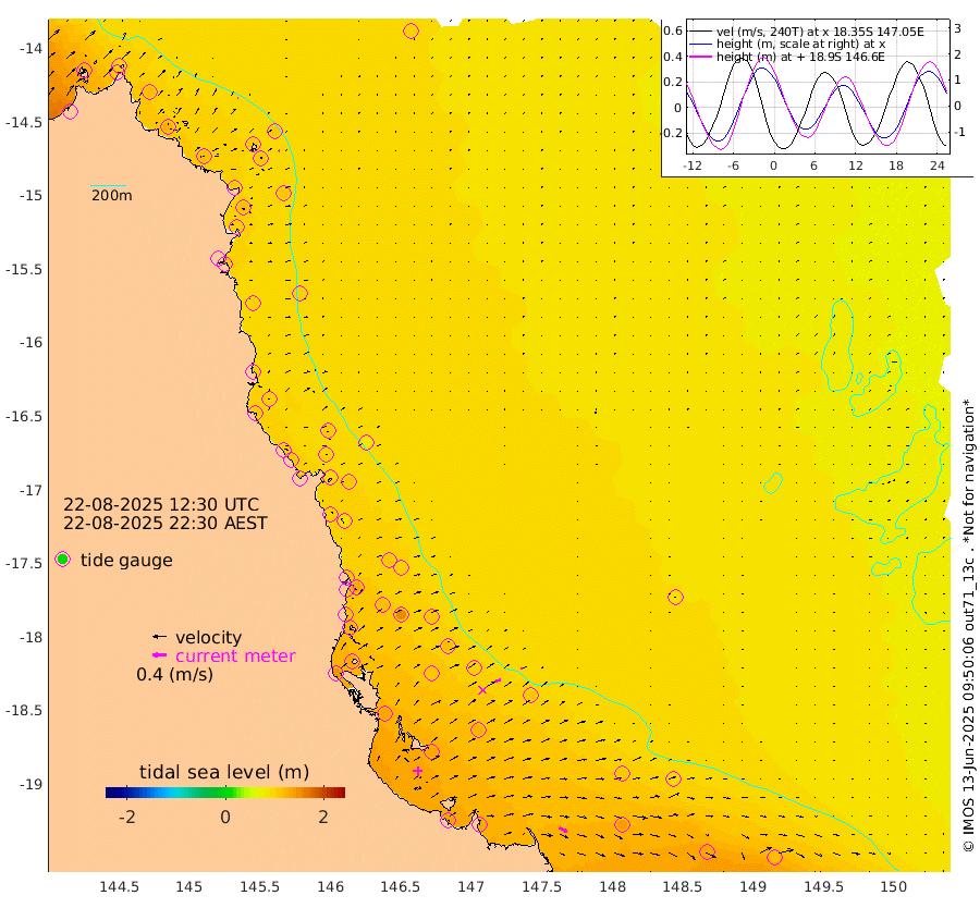 2cm/s -73T +11cm/s rms + 4cm/s -61T. GBRLSL 354m 5cm/s 47T +15cm/s rms + 2cm/s -84T. GBRLSH 32m 17cm/s 68T +15cm/s rms + 5cm/s -155T. GBRPPS 72m 5cm/s 63T +17cm/s rms + 13cm/s 115T. GBRMYR 223m 26cm/s 117T +18cm/s rms + 0cm/s -9T. NRSYON 29m 100cm Osprey Reef - West 122cm Stanley Island 91cm Pipon Islands 107cm Cape Melville 117cm Munro Reef 121cm Leggatt Island 140cm Normanby River 110cm Carter Reef 107cm Lizard Island (QLD) 115cm East Petherbridge Island 105cm North Direction Island 111cm Cape Flattery 107cm Ribbon Reef No.9 115cm Low Wooded Island 99cm Cape Bedford 76cm Endeavour River North 109cm Cooktown 102cm Cruiser Passage 99cm East Hope Island 110cm Bailay Creek 103cm Low Islets 111cm Port Douglas 109cm Palm Cove 111cm Yorkeys Knob 107cm Michaelmas Cay 76cm Euston Reef 115cm Cairns 100cm Green Island 97cm Fitzroy Island 106cm Sudbury Cay 104cm High Island 88cm Russell Island 110cm Peart Reef 104cm Nathan Reef 115cm Mourilyan Harbour 113cm Cowley Beach 128cm North Barnard Island 116cm Eddy Reef 153cm Beaver Reef 109cm Unnamed Reef No. 1 88cm Flinders Reef 120cm Clump Point 126cm Dunk Island 113cm Barnett Patches 129cm Goold Island 148cm Cardwell 111cm Britomart Reef 105cm Pith Reef 108cm Dip Reef 133cm Lucinda (Offshore) 123cm John Brewer Reef 128cm Albino Rock 110cm Shrimp Reef 96cm Jaguar Reef 138cm Townsville 130cm Cape Ferguson 138cm Stanley Reef 133cm Wallaby Reef 116cm Kennedy Reef