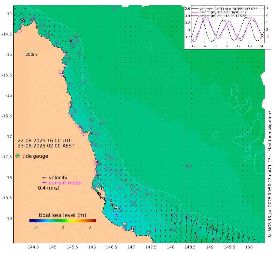 1cm/s -40T +11cm/s rms + 4cm/s -61T. GBRLSL 354m 19cm/s 14T +15cm/s rms + 2cm/s -84T. GBRLSH 32m 16cm/s 24T +15cm/s rms + 5cm/s -155T. GBRPPS 72m 9cm/s 24T +17cm/s rms + 13cm/s 115T. GBRMYR 223m 26cm/s -12T +18cm/s rms + 0cm/s -9T. NRSYON 29m -51cm Osprey Reef - West -56cm Stanley Island -57cm Pipon Islands -50cm Cape Melville -48cm Munro Reef -53cm Leggatt Island -69cm Normanby River -44cm Carter Reef -49cm Lizard Island (QLD) -55cm East Petherbridge Island -51cm North Direction Island -58cm Cape Flattery -51cm Ribbon Reef No.9 -56cm Low Wooded Island -51cm Cape Bedford -29cm Endeavour River North -54cm Cooktown -51cm Cruiser Passage -51cm East Hope Island -40cm Bailay Creek -49cm Low Islets -59cm Port Douglas -61cm Palm Cove -58cm Yorkeys Knob -54cm Michaelmas Cay -62cm Euston Reef -61cm Cairns -60cm Green Island -58cm Fitzroy Island -59cm Sudbury Cay -57cm High Island -62cm Russell Island -59cm Peart Reef -54cm Nathan Reef -59cm Mourilyan Harbour -66cm Cowley Beach -46cm North Barnard Island -62cm Eddy Reef -73cm Beaver Reef -61cm Unnamed Reef No. 1 -55cm Flinders Reef -67cm Clump Point -67cm Dunk Island -55cm Barnett Patches -73cm Goold Island -75cm Cardwell -71cm Britomart Reef -59cm Pith Reef -59cm Dip Reef -75cm Lucinda (Offshore) -57cm John Brewer Reef -81cm Albino Rock -54cm Shrimp Reef -59cm Jaguar Reef -84cm Townsville -78cm Cape Ferguson -49cm Stanley Reef -41cm Wallaby Reef -57cm Kennedy Reef