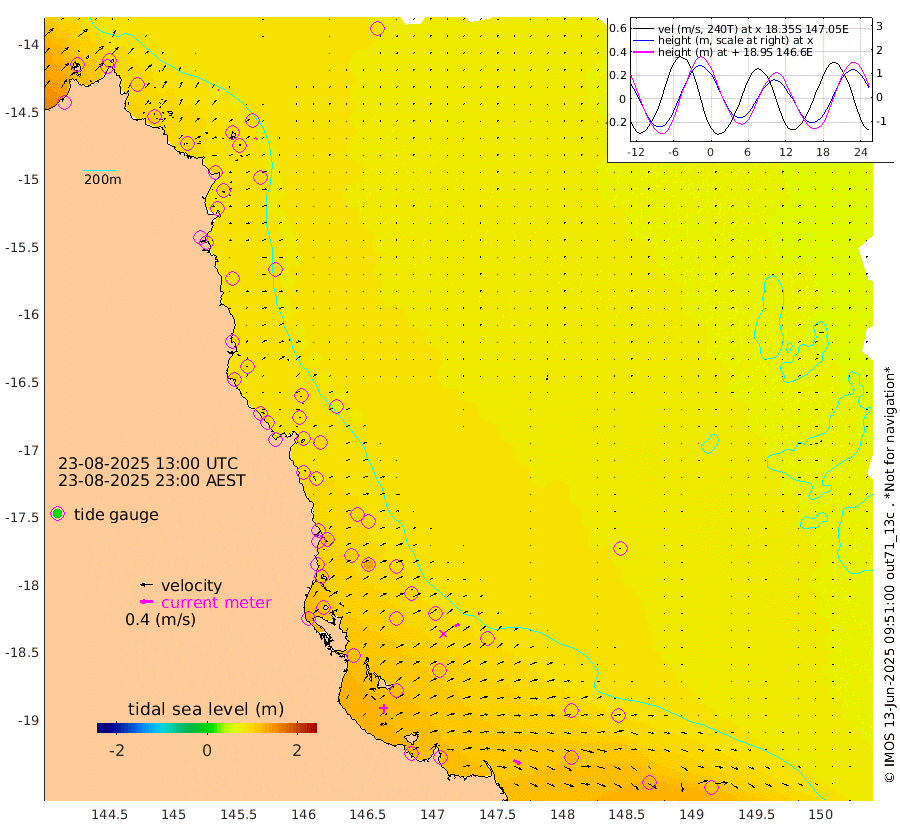 2cm/s -73T +11cm/s rms + 4cm/s -61T. GBRLSL 354m 5cm/s 39T +15cm/s rms + 2cm/s -84T. GBRLSH 32m 15cm/s 66T +15cm/s rms + 5cm/s -155T. GBRPPS 72m 5cm/s 63T +17cm/s rms + 13cm/s 115T. GBRMYR 223m 25cm/s 118T +18cm/s rms + 0cm/s -9T. NRSYON 29m 89cm Osprey Reef - West 106cm Stanley Island 84cm Pipon Islands 94cm Cape Melville 103cm Munro Reef 107cm Leggatt Island 125cm Normanby River 96cm Carter Reef 94cm Lizard Island (QLD) 102cm East Petherbridge Island 93cm North Direction Island 98cm Cape Flattery 95cm Ribbon Reef No.9 105cm Low Wooded Island 87cm Cape Bedford 68cm Endeavour River North 96cm Cooktown 91cm Cruiser Passage 85cm East Hope Island 99cm Bailay Creek 90cm Low Islets 99cm Port Douglas 97cm Palm Cove 99cm Yorkeys Knob 94cm Michaelmas Cay 65cm Euston Reef 102cm Cairns 87cm Green Island 83cm Fitzroy Island 92cm Sudbury Cay 90cm High Island 75cm Russell Island 95cm Peart Reef 91cm Nathan Reef 102cm Mourilyan Harbour 100cm Cowley Beach 113cm North Barnard Island 106cm Eddy Reef 136cm Beaver Reef 97cm Unnamed Reef No. 1 77cm Flinders Reef 106cm Clump Point 112cm Dunk Island 100cm Barnett Patches 115cm Goold Island 132cm Cardwell 98cm Britomart Reef 92cm Pith Reef 97cm Dip Reef 119cm Lucinda (Offshore) 107cm John Brewer Reef 115cm Albino Rock 97cm Shrimp Reef 85cm Jaguar Reef 123cm Townsville 116cm Cape Ferguson 125cm Stanley Reef 121cm Wallaby Reef 106cm Kennedy Reef