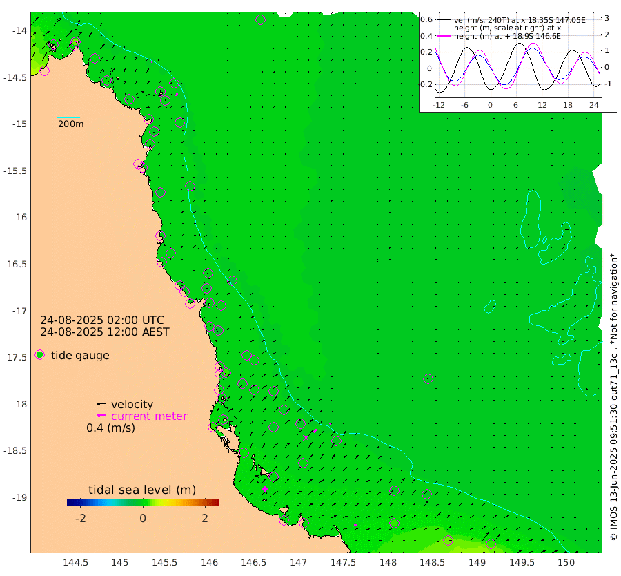 1cm/s 97T +11cm/s rms + 4cm/s -61T. GBRLSL 354m 14cm/s 20T +15cm/s rms + 2cm/s -84T. GBRLSH 32m 18cm/s 43T +15cm/s rms + 5cm/s -155T. GBRPPS 72m 7cm/s 47T +17cm/s rms + 13cm/s 115T. GBRMYR 223m 12cm/s 80T +18cm/s rms + 0cm/s -9T. NRSYON 29m -3cm Osprey Reef - West 4cm Stanley Island 25cm Pipon Islands 5cm Cape Melville 4cm Munro Reef 8cm Leggatt Island 16cm Normanby River -2cm Carter Reef -3cm Lizard Island (QLD) -4cm East Petherbridge Island -7cm North Direction Island -2cm Cape Flattery -4cm Ribbon Reef No.9 -13cm Low Wooded Island -7cm Cape Bedford 2cm Endeavour River North -3cm Cooktown -8cm Cruiser Passage -18cm East Hope Island -2cm Bailay Creek -5cm Low Islets -2cm Port Douglas -5cm Palm Cove -2cm Yorkeys Knob -1cm Michaelmas Cay -25cm Euston Reef 0cm Cairns -13cm Green Island -5cm Fitzroy Island -5cm Sudbury Cay -6cm High Island -17cm Russell Island -5cm Peart Reef -4cm Nathan Reef 1cm Mourilyan Harbour -4cm Cowley Beach 18cm North Barnard Island -1cm Eddy Reef -1cm Beaver Reef -5cm Unnamed Reef No. 1 -14cm Flinders Reef 1cm Clump Point 6cm Dunk Island -9cm Barnett Patches 3cm Goold Island 19cm Cardwell -8cm Britomart Reef -10cm Pith Reef -9cm Dip Reef 8cm Lucinda (Offshore) 5cm John Brewer Reef 2cm Albino Rock -9cm Shrimp Reef -9cm Jaguar Reef 8cm Townsville 4cm Cape Ferguson 17cm Stanley Reef 27cm Wallaby Reef 19cm Kennedy Reef
