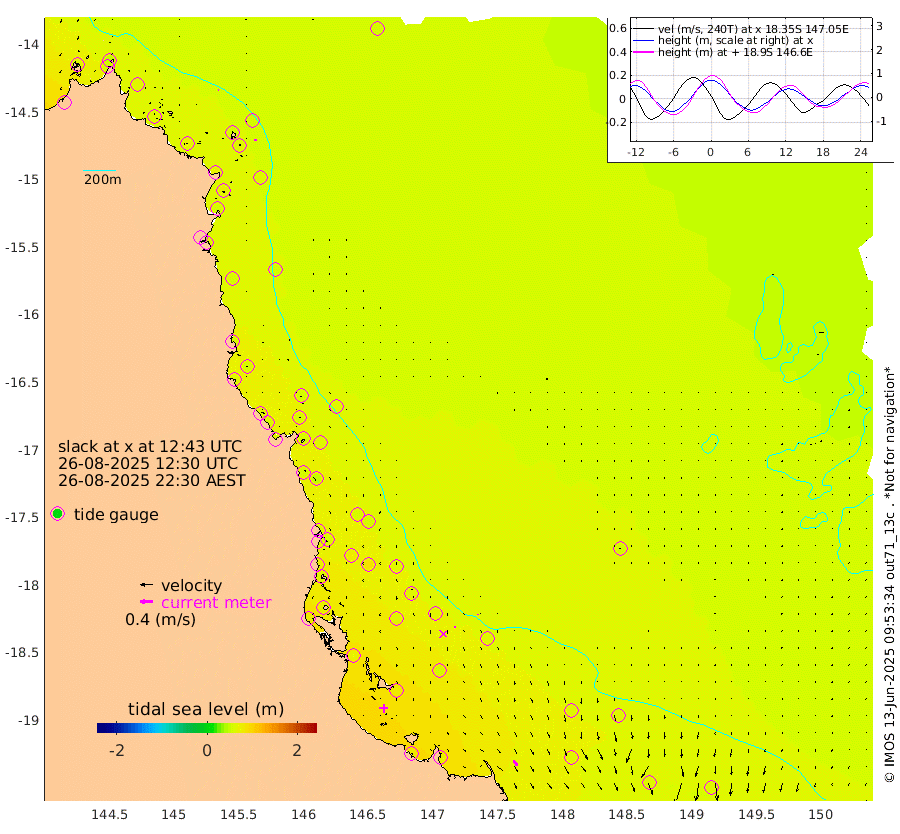 2cm/s -86T +11cm/s rms + 4cm/s -61T. GBRLSL 354m 5cm/s -178T +15cm/s rms + 2cm/s -84T. GBRLSH 32m 5cm/s 149T +15cm/s rms + 5cm/s -155T. GBRPPS 72m 2cm/s -170T +17cm/s rms + 13cm/s 115T. GBRMYR 223m 21cm/s 146T +18cm/s rms + 0cm/s -9T. NRSYON 29m 58cm Osprey Reef - West 63cm Stanley Island 47cm Pipon Islands 60cm Cape Melville 61cm Munro Reef 63cm Leggatt Island 74cm Normanby River 58cm Carter Reef 56cm Lizard Island (QLD) 68cm East Petherbridge Island 60cm North Direction Island 68cm Cape Flattery 61cm Ribbon Reef No.9 69cm Low Wooded Island 58cm Cape Bedford 36cm Endeavour River North 61cm Cooktown 60cm Cruiser Passage 60cm East Hope Island 55cm Bailay Creek 57cm Low Islets 63cm Port Douglas 63cm Palm Cove 56cm Yorkeys Knob 59cm Michaelmas Cay 61cm Euston Reef 65cm Cairns 56cm Green Island 59cm Fitzroy Island 62cm Sudbury Cay 53cm High Island 50cm Russell Island 56cm Peart Reef 53cm Nathan Reef 65cm Mourilyan Harbour 66cm Cowley Beach 56cm North Barnard Island 77cm Eddy Reef 84cm Beaver Reef 63cm Unnamed Reef No. 1 58cm Flinders Reef 68cm Clump Point 65cm Dunk Island 60cm Barnett Patches 70cm Goold Island 80cm Cardwell 63cm Britomart Reef 65cm Pith Reef 67cm Dip Reef 75cm Lucinda (Offshore) 59cm John Brewer Reef 79cm Albino Rock 63cm Shrimp Reef 60cm Jaguar Reef 79cm Townsville 74cm Cape Ferguson 62cm Stanley Reef 62cm Wallaby Reef 67cm Kennedy Reef