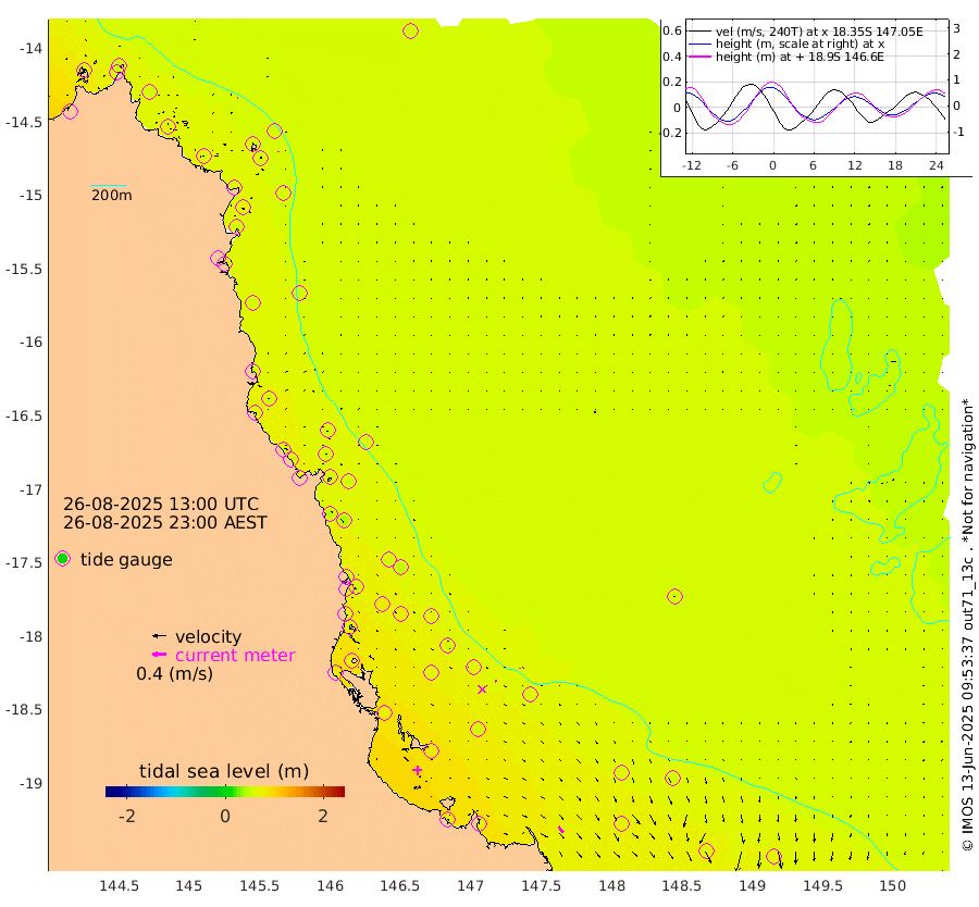 2cm/s -82T +11cm/s rms + 4cm/s -61T. GBRLSL 354m 1cm/s 141T +15cm/s rms + 2cm/s -84T. GBRLSH 32m 5cm/s 105T +15cm/s rms + 5cm/s -155T. GBRPPS 72m 1cm/s 153T +17cm/s rms + 13cm/s 115T. GBRMYR 223m 21cm/s 139T +18cm/s rms + 0cm/s -9T. NRSYON 29m 56cm Osprey Reef - West 61cm Stanley Island 50cm Pipon Islands 59cm Cape Melville 60cm Munro Reef 63cm Leggatt Island 73cm Normanby River 56cm Carter Reef 55cm Lizard Island (QLD) 66cm East Petherbridge Island 59cm North Direction Island 65cm Cape Flattery 60cm Ribbon Reef No.9 68cm Low Wooded Island 56cm Cape Bedford 36cm Endeavour River North 59cm Cooktown 58cm Cruiser Passage 55cm East Hope Island 56cm Bailay Creek 55cm Low Islets 61cm Port Douglas 61cm Palm Cove 55cm Yorkeys Knob 57cm Michaelmas Cay 55cm Euston Reef 63cm Cairns 53cm Green Island 55cm Fitzroy Island 58cm Sudbury Cay 51cm High Island 45cm Russell Island 53cm Peart Reef 51cm Nathan Reef 63cm Mourilyan Harbour 63cm Cowley Beach 57cm North Barnard Island 76cm Eddy Reef 82cm Beaver Reef 61cm Unnamed Reef No. 1 54cm Flinders Reef 66cm Clump Point 64cm Dunk Island 59cm Barnett Patches 69cm Goold Island 80cm Cardwell 61cm Britomart Reef 62cm Pith Reef 65cm Dip Reef 74cm Lucinda (Offshore) 57cm John Brewer Reef 77cm Albino Rock 61cm Shrimp Reef 58cm Jaguar Reef 77cm Townsville 73cm Cape Ferguson 65cm Stanley Reef 67cm Wallaby Reef 70cm Kennedy Reef
