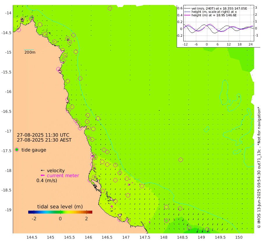 2cm/s -92T +11cm/s rms + 4cm/s -61T. GBRLSL 354m 7cm/s -165T +15cm/s rms + 2cm/s -84T. GBRLSH 32m 6cm/s -164T +15cm/s rms + 5cm/s -155T. GBRPPS 72m 3cm/s -150T +17cm/s rms + 13cm/s 115T. GBRMYR 223m 12cm/s 163T +18cm/s rms + 0cm/s -9T. NRSYON 29m 34cm Osprey Reef - West 40cm Stanley Island 16cm Pipon Islands 37cm Cape Melville 38cm Munro Reef 38cm Leggatt Island 43cm Normanby River 37cm Carter Reef 35cm Lizard Island (QLD) 43cm East Petherbridge Island 37cm North Direction Island 47cm Cape Flattery 39cm Ribbon Reef No.9 41cm Low Wooded Island 37cm Cape Bedford 17cm Endeavour River North 38cm Cooktown 37cm Cruiser Passage 44cm East Hope Island 27cm Bailay Creek 38cm Low Islets 39cm Port Douglas 39cm Palm Cove 33cm Yorkeys Knob 39cm Michaelmas Cay 46cm Euston Reef 40cm Cairns 38cm Green Island 46cm Fitzroy Island 42cm Sudbury Cay 33cm High Island 39cm Russell Island 37cm Peart Reef 33cm Nathan Reef 39cm Mourilyan Harbour 40cm Cowley Beach 33cm North Barnard Island 47cm Eddy Reef 52cm Beaver Reef 38cm Unnamed Reef No. 1 43cm Flinders Reef 41cm Clump Point 39cm Dunk Island 35cm Barnett Patches 41cm Goold Island 46cm Cardwell 39cm Britomart Reef 42cm Pith Reef 43cm Dip Reef 44cm Lucinda (Offshore) 41cm John Brewer Reef 47cm Albino Rock 40cm Shrimp Reef 36cm Jaguar Reef 46cm Townsville 43cm Cape Ferguson 26cm Stanley Reef 25cm Wallaby Reef 30cm Kennedy Reef