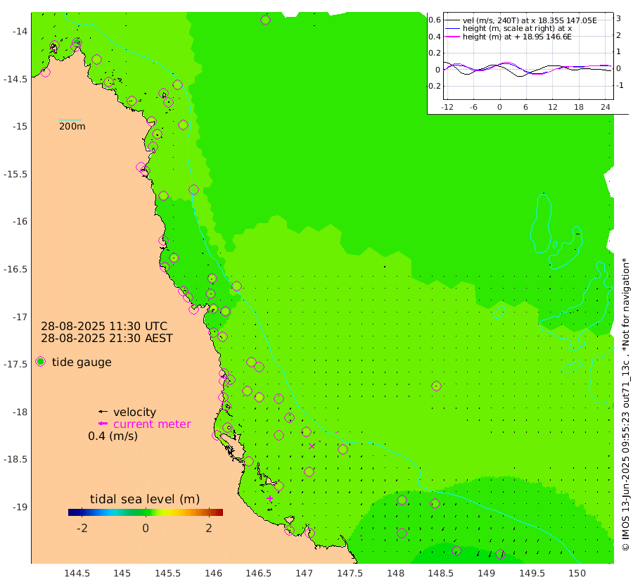 2cm/s -93T +11cm/s rms + 4cm/s -61T. GBRLSL 354m 3cm/s -156T +15cm/s rms + 2cm/s -84T. GBRLSH 32m 3cm/s -178T +15cm/s rms + 5cm/s -155T. GBRPPS 72m 1cm/s -156T +17cm/s rms + 13cm/s 115T. GBRMYR 223m 6cm/s 161T +18cm/s rms + 0cm/s -9T. NRSYON 29m 25cm Osprey Reef - West 32cm Stanley Island 7cm Pipon Islands 29cm Cape Melville 30cm Munro Reef 31cm Leggatt Island 34cm Normanby River 30cm Carter Reef 27cm Lizard Island (QLD) 32cm East Petherbridge Island 27cm North Direction Island 38cm Cape Flattery 30cm Ribbon Reef No.9 31cm Low Wooded Island 27cm Cape Bedford 14cm Endeavour River North 30cm Cooktown 28cm Cruiser Passage 35cm East Hope Island 19cm Bailay Creek 31cm Low Islets 30cm Port Douglas 29cm Palm Cove 26cm Yorkeys Knob 31cm Michaelmas Cay 31cm Euston Reef 31cm Cairns 29cm Green Island 38cm Fitzroy Island 33cm Sudbury Cay 26cm High Island 31cm Russell Island 31cm Peart Reef 27cm Nathan Reef 30cm Mourilyan Harbour 29cm Cowley Beach 29cm North Barnard Island 34cm Eddy Reef 41cm Beaver Reef 28cm Unnamed Reef No. 1 33cm Flinders Reef 31cm Clump Point 30cm Dunk Island 26cm Barnett Patches 30cm Goold Island 34cm Cardwell 28cm Britomart Reef 30cm Pith Reef 33cm Dip Reef 32cm Lucinda (Offshore) 36cm John Brewer Reef 33cm Albino Rock 29cm Shrimp Reef 24cm Jaguar Reef 33cm Townsville 30cm Cape Ferguson 17cm Stanley Reef 15cm Wallaby Reef 17cm Kennedy Reef
