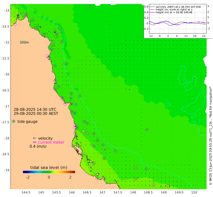 2cm/s -72T +11cm/s rms + 4cm/s -61T. GBRLSL 354m 6cm/s 16T +15cm/s rms + 2cm/s -84T. GBRLSH 32m 5cm/s 56T +15cm/s rms + 5cm/s -155T. GBRPPS 72m 1cm/s 32T +17cm/s rms + 13cm/s 115T. GBRMYR 223m 10cm/s 128T +18cm/s rms + 0cm/s -9T. NRSYON 29m 12cm Osprey Reef - West 9cm Stanley Island 15cm Pipon Islands 15cm Cape Melville 14cm Munro Reef 14cm Leggatt Island 14cm Normanby River 11cm Carter Reef 11cm Lizard Island (QLD) 14cm East Petherbridge Island 12cm North Direction Island 16cm Cape Flattery 13cm Ribbon Reef No.9 15cm Low Wooded Island 11cm Cape Bedford 6cm Endeavour River North 12cm Cooktown 11cm Cruiser Passage 11cm East Hope Island 12cm Bailay Creek 12cm Low Islets 13cm Port Douglas 11cm Palm Cove 6cm Yorkeys Knob 9cm Michaelmas Cay 9cm Euston Reef 14cm Cairns 3cm Green Island 13cm Fitzroy Island 10cm Sudbury Cay 5cm High Island -3cm Russell Island 4cm Peart Reef 6cm Nathan Reef 14cm Mourilyan Harbour 12cm Cowley Beach 12cm North Barnard Island 25cm Eddy Reef 17cm Beaver Reef 11cm Unnamed Reef No. 1 10cm Flinders Reef 14cm Clump Point 10cm Dunk Island 10cm Barnett Patches 12cm Goold Island 20cm Cardwell 7cm Britomart Reef 14cm Pith Reef 15cm Dip Reef 16cm Lucinda (Offshore) 8cm John Brewer Reef 18cm Albino Rock 15cm Shrimp Reef 13cm Jaguar Reef 16cm Townsville 15cm Cape Ferguson 16cm Stanley Reef 24cm Wallaby Reef 29cm Kennedy Reef
