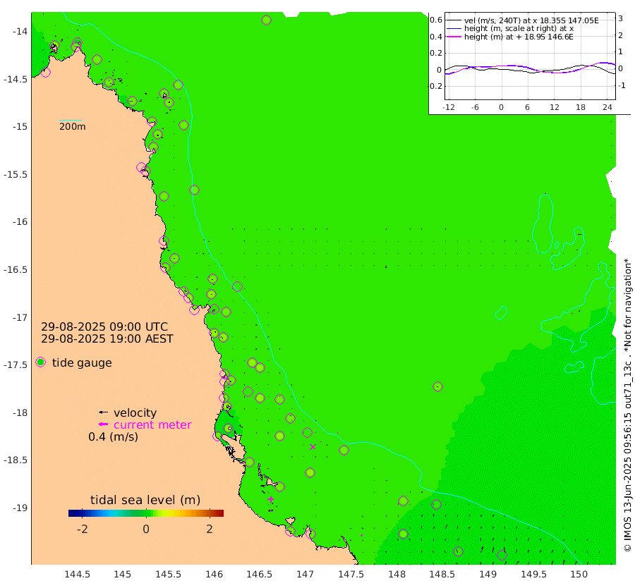 0cm/s -132T +11cm/s rms + 4cm/s -61T. GBRLSL 354m 2cm/s -160T +15cm/s rms + 2cm/s -84T. GBRLSH 32m 2cm/s 166T +15cm/s rms + 5cm/s -155T. GBRPPS 72m 1cm/s 106T +17cm/s rms + 13cm/s 115T. GBRMYR 223m 5cm/s -34T +18cm/s rms + 0cm/s -9T. NRSYON 29m 24cm Osprey Reef - West 31cm Stanley Island 6cm Pipon Islands 23cm Cape Melville 23cm Munro Reef 27cm Leggatt Island 29cm Normanby River 26cm Carter Reef 27cm Lizard Island (QLD) 27cm East Petherbridge Island 26cm North Direction Island 25cm Cape Flattery 25cm Ribbon Reef No.9 28cm Low Wooded Island 26cm Cape Bedford 19cm Endeavour River North 27cm Cooktown 26cm Cruiser Passage 25cm East Hope Island 19cm Bailay Creek 26cm Low Islets 26cm Port Douglas 28cm Palm Cove 32cm Yorkeys Knob 27cm Michaelmas Cay 18cm Euston Reef 26cm Cairns 31cm Green Island 21cm Fitzroy Island 27cm Sudbury Cay 31cm High Island 36cm Russell Island 36cm Peart Reef 31cm Nathan Reef 25cm Mourilyan Harbour 26cm Cowley Beach 26cm North Barnard Island 16cm Eddy Reef 33cm Beaver Reef 28cm Unnamed Reef No. 1 27cm Flinders Reef 27cm Clump Point 31cm Dunk Island 29cm Barnett Patches 31cm Goold Island 25cm Cardwell 31cm Britomart Reef 22cm Pith Reef 28cm Dip Reef 28cm Lucinda (Offshore) 36cm John Brewer Reef 23cm Albino Rock 23cm Shrimp Reef 18cm Jaguar Reef 28cm Townsville 28cm Cape Ferguson 27cm Stanley Reef 15cm Wallaby Reef 12cm Kennedy Reef