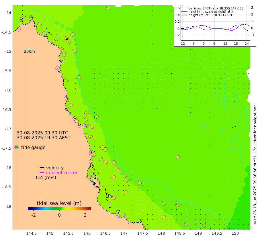 0cm/s -177T +11cm/s rms + 4cm/s -61T. GBRLSL 354m 1cm/s 179T +15cm/s rms + 2cm/s -84T. GBRLSH 32m 3cm/s 103T +15cm/s rms + 5cm/s -155T. GBRPPS 72m 2cm/s 81T +17cm/s rms + 13cm/s 115T. GBRMYR 223m 3cm/s 8T +18cm/s rms + 0cm/s -9T. NRSYON 29m 40cm Osprey Reef - West 48cm Stanley Island 18cm Pipon Islands 38cm Cape Melville 39cm Munro Reef 44cm Leggatt Island 49cm Normanby River 40cm Carter Reef 41cm Lizard Island (QLD) 45cm East Petherbridge Island 42cm North Direction Island 40cm Cape Flattery 41cm Ribbon Reef No.9 46cm Low Wooded Island 42cm Cape Bedford 32cm Endeavour River North 42cm Cooktown 41cm Cruiser Passage 37cm East Hope Island 37cm Bailay Creek 40cm Low Islets 42cm Port Douglas 43cm Palm Cove 47cm Yorkeys Knob 42cm Michaelmas Cay 31cm Euston Reef 42cm Cairns 45cm Green Island 30cm Fitzroy Island 41cm Sudbury Cay 44cm High Island 47cm Russell Island 50cm Peart Reef 44cm Nathan Reef 41cm Mourilyan Harbour 42cm Cowley Beach 41cm North Barnard Island 35cm Eddy Reef 55cm Beaver Reef 43cm Unnamed Reef No. 1 38cm Flinders Reef 43cm Clump Point 48cm Dunk Island 44cm Barnett Patches 48cm Goold Island 46cm Cardwell 46cm Britomart Reef 37cm Pith Reef 43cm Dip Reef 46cm Lucinda (Offshore) 49cm John Brewer Reef 42cm Albino Rock 37cm Shrimp Reef 31cm Jaguar Reef 47cm Townsville 46cm Cape Ferguson 47cm Stanley Reef 34cm Wallaby Reef 29cm Kennedy Reef