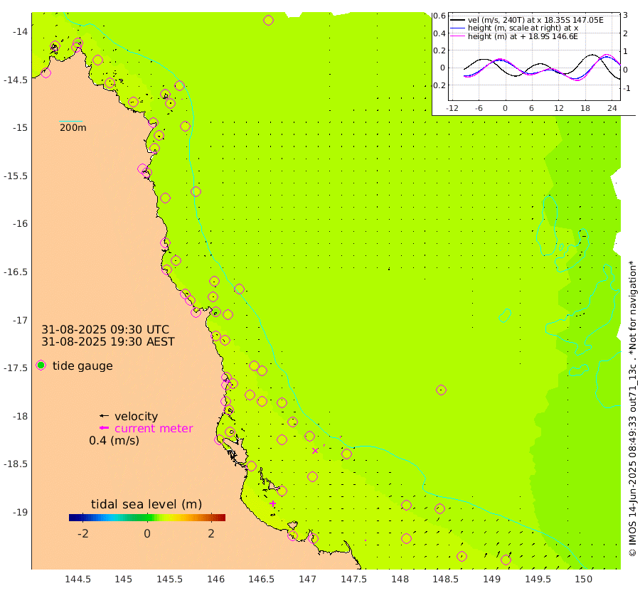 0cm/s 122T +11cm/s rms + 4cm/s -61T. GBRLSL 354m 1cm/s 138T +15cm/s rms + 2cm/s -84T. GBRLSH 32m 4cm/s 97T +15cm/s rms + 5cm/s -155T. GBRPPS 72m 2cm/s 86T +17cm/s rms + 13cm/s 115T. GBRMYR 223m 3cm/s 86T +18cm/s rms + 0cm/s -9T. NRSYON 29m 54cm Osprey Reef - West 63cm Stanley Island 31cm Pipon Islands 51cm Cape Melville 53cm Munro Reef 58cm Leggatt Island 65cm Normanby River 54cm Carter Reef 54cm Lizard Island (QLD) 63cm East Petherbridge Island 59cm North Direction Island 53cm Cape Flattery 54cm Ribbon Reef No.9 62cm Low Wooded Island 58cm Cape Bedford 41cm Endeavour River North 56cm Cooktown 54cm Cruiser Passage 49cm East Hope Island 54cm Bailay Creek 52cm Low Islets 56cm Port Douglas 57cm Palm Cove 59cm Yorkeys Knob 56cm Michaelmas Cay 47cm Euston Reef 57cm Cairns 57cm Green Island 37cm Fitzroy Island 53cm Sudbury Cay 56cm High Island 57cm Russell Island 61cm Peart Reef 54cm Nathan Reef 56cm Mourilyan Harbour 58cm Cowley Beach 53cm North Barnard Island 53cm Eddy Reef 73cm Beaver Reef 58cm Unnamed Reef No. 1 48cm Flinders Reef 59cm Clump Point 62cm Dunk Island 59cm Barnett Patches 65cm Goold Island 65cm Cardwell 60cm Britomart Reef 52cm Pith Reef 57cm Dip Reef 64cm Lucinda (Offshore) 60cm John Brewer Reef 60cm Albino Rock 52cm Shrimp Reef 47cm Jaguar Reef 66cm Townsville 63cm Cape Ferguson 67cm Stanley Reef 54cm Wallaby Reef 49cm Kennedy Reef