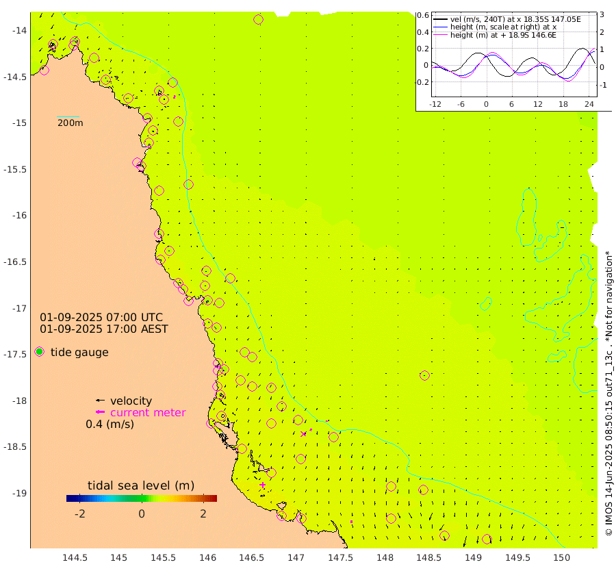 1cm/s 34T +11cm/s rms + 4cm/s -61T. GBRLSL 354m 14cm/s -172T +15cm/s rms + 2cm/s -84T. GBRLSH 32m 9cm/s -161T +15cm/s rms + 5cm/s -155T. GBRPPS 72m 5cm/s -151T +17cm/s rms + 13cm/s 115T. GBRMYR 223m 11cm/s 168T +18cm/s rms + 0cm/s -9T. NRSYON 29m 47cm Osprey Reef - West 50cm Stanley Island 35cm Pipon Islands 48cm Cape Melville 46cm Munro Reef 45cm Leggatt Island 44cm Normanby River 51cm Carter Reef 52cm Lizard Island (QLD) 54cm East Petherbridge Island 55cm North Direction Island 51cm Cape Flattery 47cm Ribbon Reef No.9 54cm Low Wooded Island 54cm Cape Bedford 28cm Endeavour River North 52cm Cooktown 48cm Cruiser Passage 59cm East Hope Island 51cm Bailay Creek 47cm Low Islets 53cm Port Douglas 54cm Palm Cove 50cm Yorkeys Knob 51cm Michaelmas Cay 64cm Euston Reef 54cm Cairns 55cm Green Island 44cm Fitzroy Island 52cm Sudbury Cay 54cm High Island 52cm Russell Island 50cm Peart Reef 47cm Nathan Reef 54cm Mourilyan Harbour 59cm Cowley Beach 44cm North Barnard Island 54cm Eddy Reef 67cm Beaver Reef 56cm Unnamed Reef No. 1 51cm Flinders Reef 57cm Clump Point 56cm Dunk Island 58cm Barnett Patches 61cm Goold Island 58cm Cardwell 62cm Britomart Reef 58cm Pith Reef 52cm Dip Reef 61cm Lucinda (Offshore) 51cm John Brewer Reef 63cm Albino Rock 64cm Shrimp Reef 63cm Jaguar Reef 65cm Townsville 65cm Cape Ferguson 61cm Stanley Reef 56cm Wallaby Reef 65cm Kennedy Reef