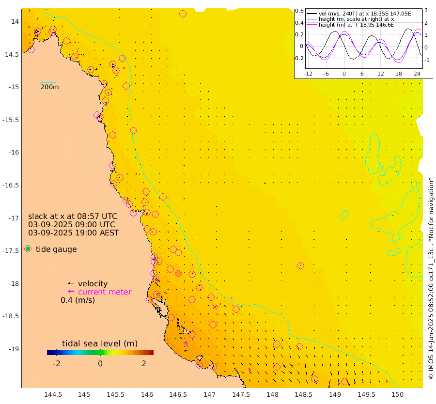 0cm/s -38T +11cm/s rms + 4cm/s -61T. GBRLSL 354m 11cm/s 180T +15cm/s rms + 2cm/s -84T. GBRLSH 32m 8cm/s 154T +15cm/s rms + 5cm/s -155T. GBRPPS 72m 3cm/s 178T +17cm/s rms + 13cm/s 115T. GBRMYR 223m 19cm/s 145T +18cm/s rms + 0cm/s -9T. NRSYON 29m 88cm Osprey Reef - West 109cm Stanley Island 73cm Pipon Islands 98cm Cape Melville 101cm Munro Reef 100cm Leggatt Island 111cm Normanby River 102cm Carter Reef 99cm Lizard Island (QLD) 111cm East Petherbridge Island 105cm North Direction Island 105cm Cape Flattery 95cm Ribbon Reef No.9 104cm Low Wooded Island 101cm Cape Bedford 53cm Endeavour River North 101cm Cooktown 93cm Cruiser Passage 106cm East Hope Island 97cm Bailay Creek 95cm Low Islets 104cm Port Douglas 103cm Palm Cove 97cm Yorkeys Knob 100cm Michaelmas Cay 107cm Euston Reef 106cm Cairns 100cm Green Island 93cm Fitzroy Island 102cm Sudbury Cay 98cm High Island 97cm Russell Island 100cm Peart Reef 93cm Nathan Reef 105cm Mourilyan Harbour 111cm Cowley Beach 98cm North Barnard Island 106cm Eddy Reef 135cm Beaver Reef 103cm Unnamed Reef No. 1 92cm Flinders Reef 111cm Clump Point 111cm Dunk Island 106cm Barnett Patches 118cm Goold Island 126cm Cardwell 111cm Britomart Reef 106cm Pith Reef 98cm Dip Reef 121cm Lucinda (Offshore) 108cm John Brewer Reef 123cm Albino Rock 111cm Shrimp Reef 103cm Jaguar Reef 128cm Townsville 123cm Cape Ferguson 114cm Stanley Reef 107cm Wallaby Reef 107cm Kennedy Reef